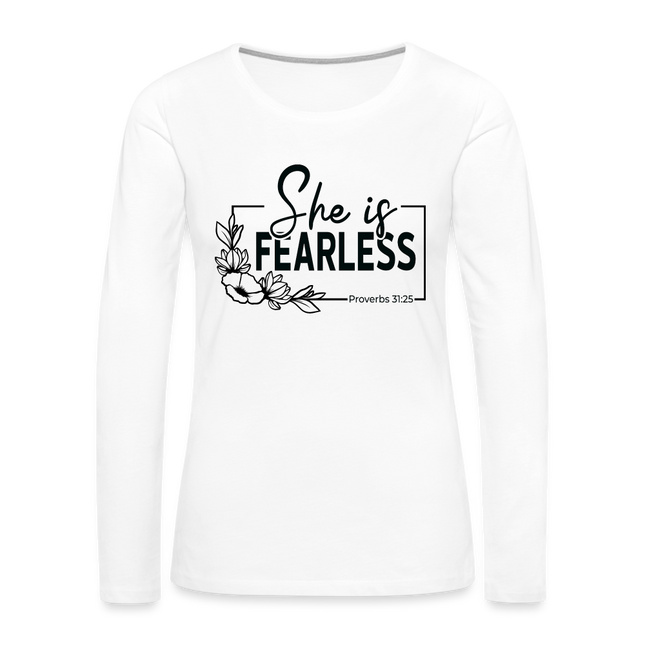 She Is Fearless Women's Premium Long Sleeve T-Shirt (Proverbs 31:25)