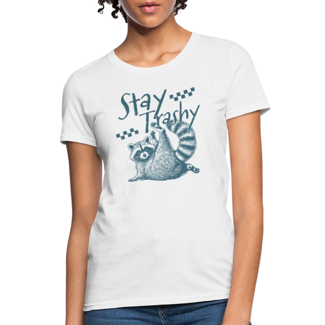 Stay Trashy Women’s T-Shirt – Funny Feral Raccoon Design