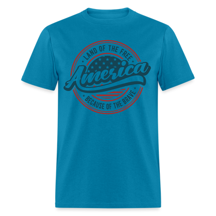 Celebrate the patriotic spirit of America with our American Land of the Free T-Shirt Because of the Brave. This bold and inspiring design pays tribute to the values that make our nation great.