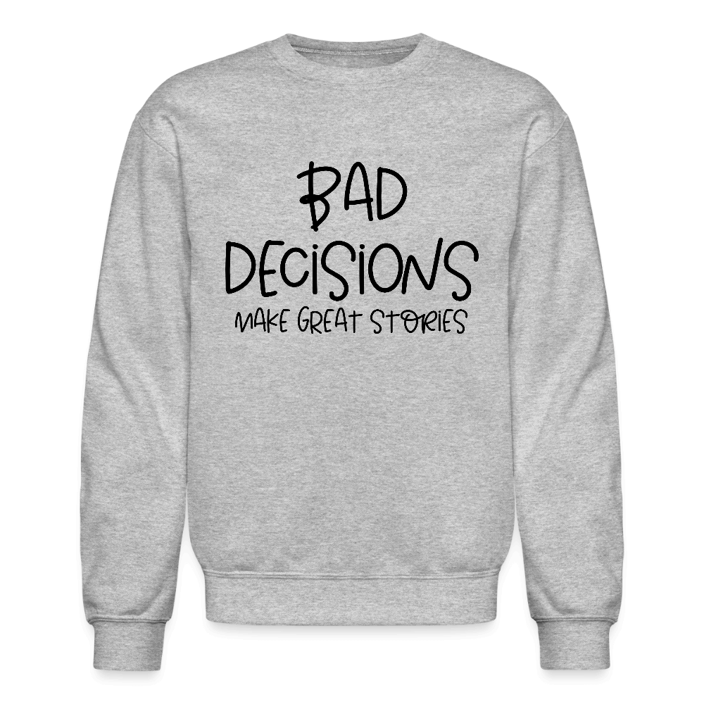 Some of the best memories come from the craziest choices—and this sweatshirt proudly owns that truth. Featuring the bold statement "Bad Decisions Make Great Stories," this design is all about living without regrets and finding laughter in the chaos. Whether it's for weekend getaways, party nights, or just sharing inside jokes with your friends, this sweatshirt turns any casual outfit into a conversation starter.