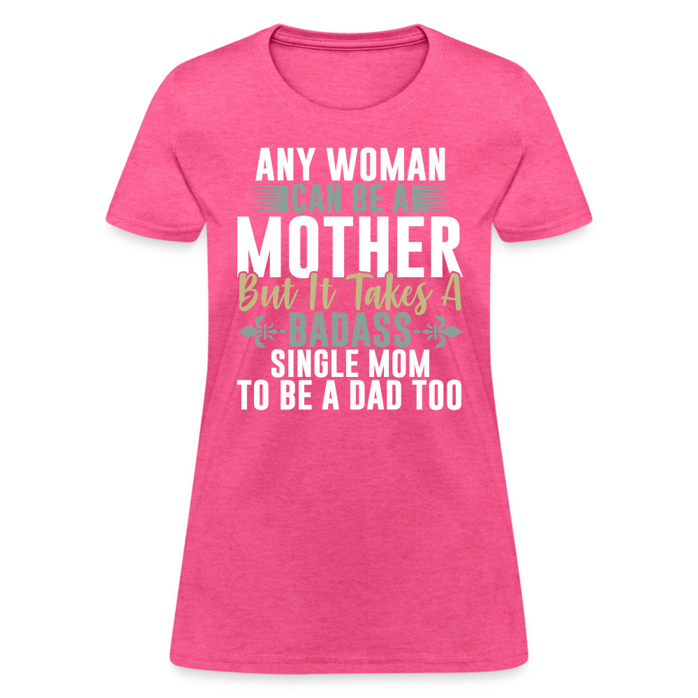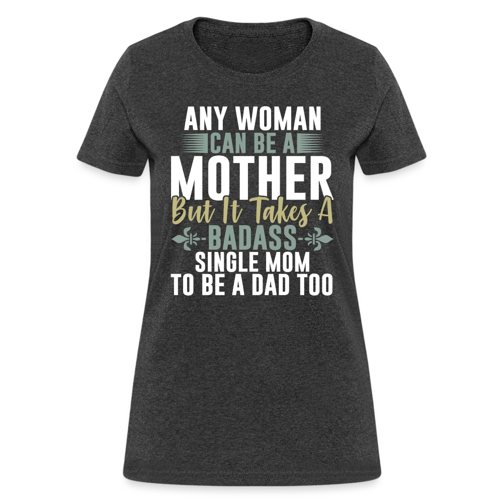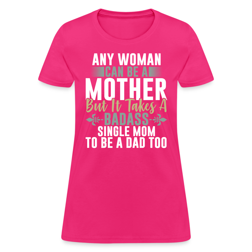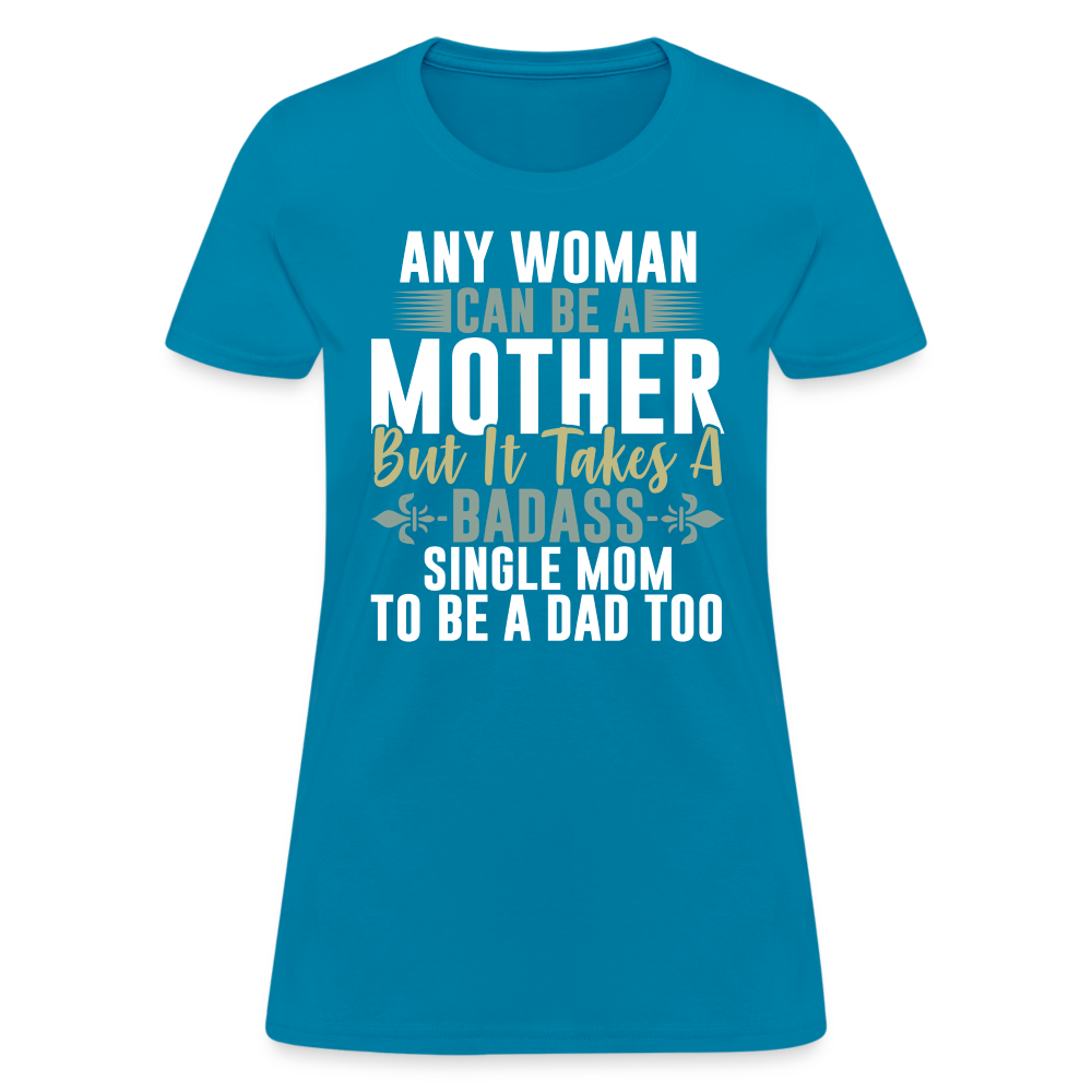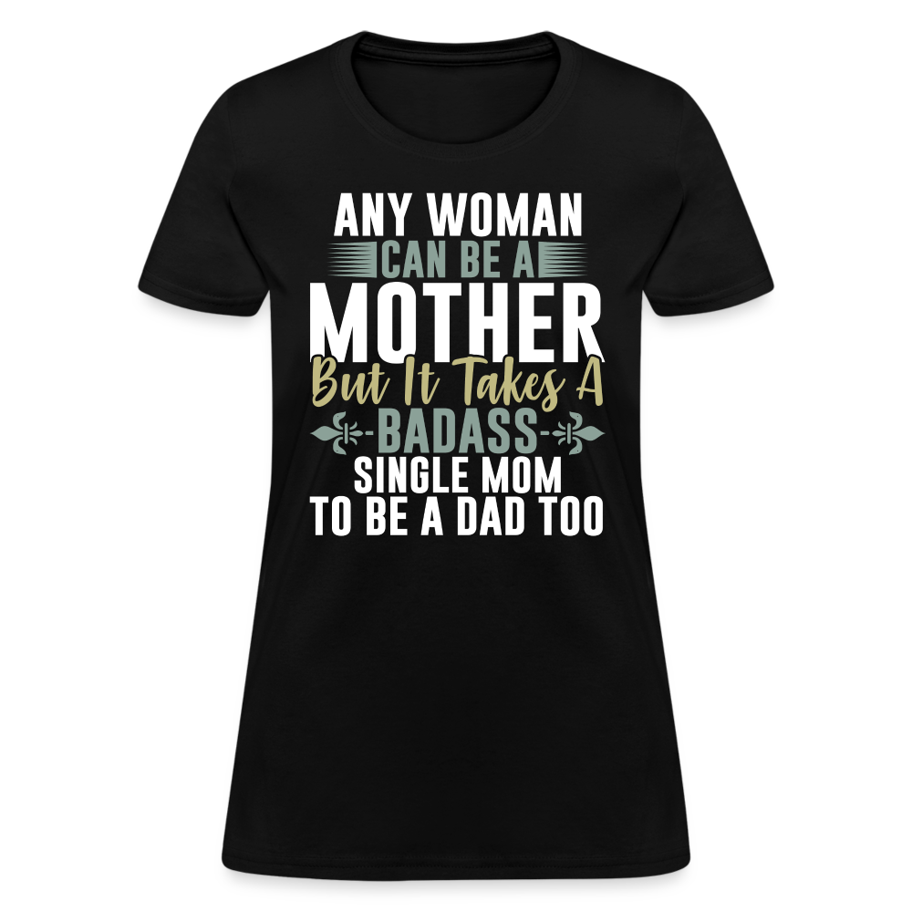 The captivating design features the empowering text "Any Woman Can Be A Mother But It Takes A Badass Single Mom To Be A Dad Too." This powerful statement highlights the extraordinary nature of single moms who go above and beyond to provide for and nurture their children. It acknowledges their remarkable ability to fulfill both parental roles with courage and determination.