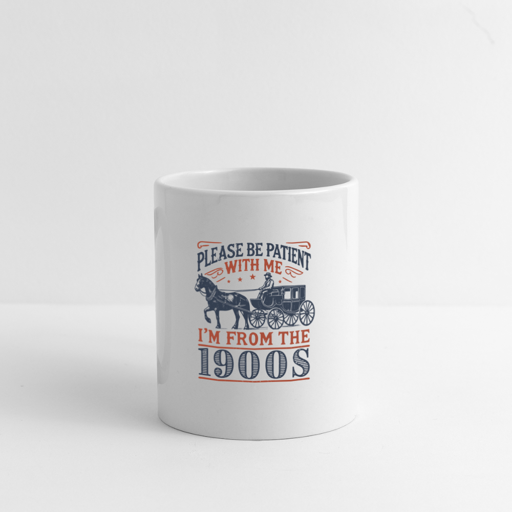 Start your day with a smile and a touch of nostalgia with the "Be Patient With Me I'm From the 1900's" Coffee Mug. This playful mug features the humorous phrase "Please Be Patient With Me I'm From the 1900's" alongside an image of a classic horse and buggy, making it a perfect blend of wit and charm.