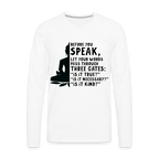 Embrace sophistication and mindfulness with our "Before You Speak" Men's Premium Long Sleeve T-Shirt – because words have the power to shape our world.