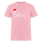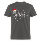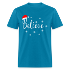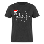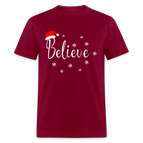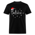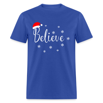 Get into the festive mood with our captivating "Believe T-Shirt (Santa Claus Hat)." This enchanting tee features the word "Believe" creatively surrounded by delicate snowflakes, all while the letter B is adorned with a cheerful Santa Claus Christmas hat. As you wear this shirt, you'll be immersed in the magic of the holiday season and inspire others to hold onto the joy and wonder it brings.