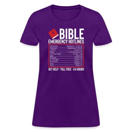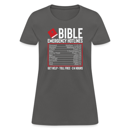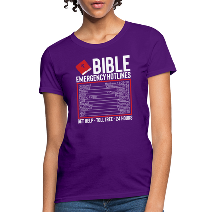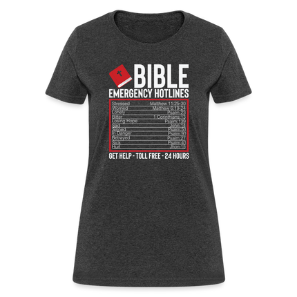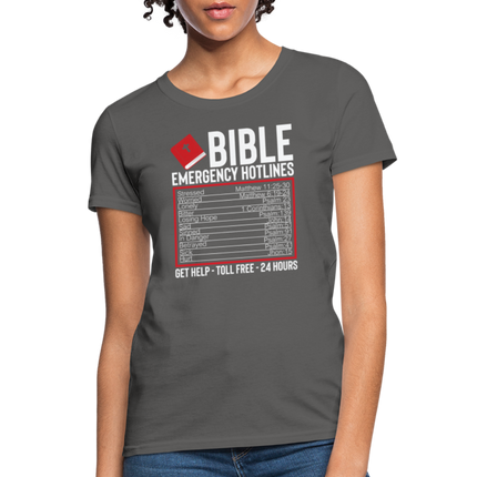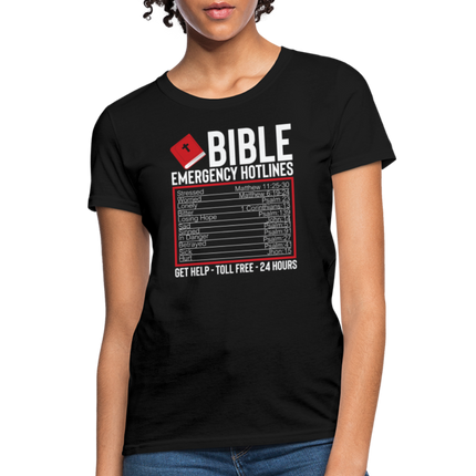 This Bible Emergency Hotline (Scriptures) Women's Contoured T-Shirt is Contoured and Side Seamed for a Feminine Fit – RUNS SMALL
