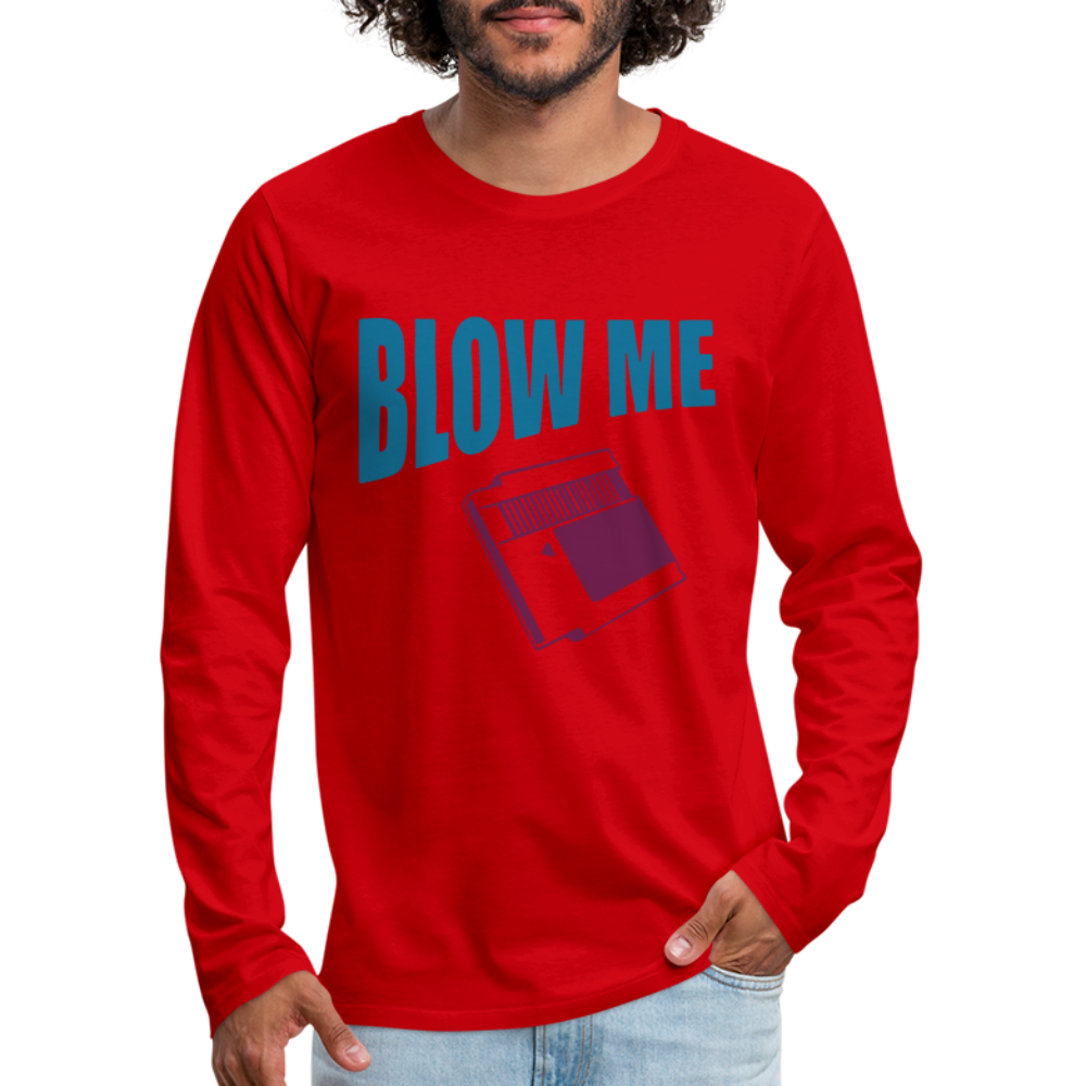 Whether you're a seasoned gamer who remembers the cassette-blowing ritual or someone who loves a unique and stylish wardrobe, this premium long sleeve tee is a standout choice. Embrace the nostalgia, share a smile, and make a statement with the Blow Me Men's Premium Long Sleeve T-Shirt – your go-to piece for both comfort and retro charm. Get yours now and let the good times roll!