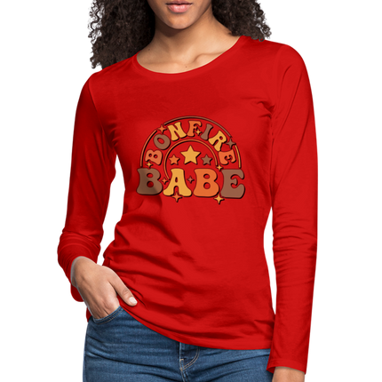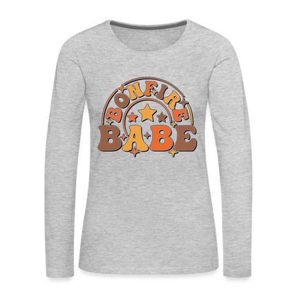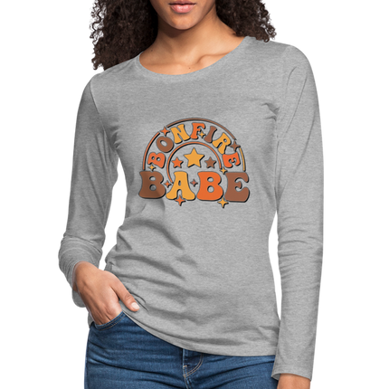 The "Bonfire Babe Women's Premium Long Sleeve T-Shirt" is your ideal companion for those chilly nights spent around a crackling bonfire. This long-sleeved tee embodies the cozy warmth and camaraderie of these gatherings, making it a must-have for anyone who cherishes these memorable moments.