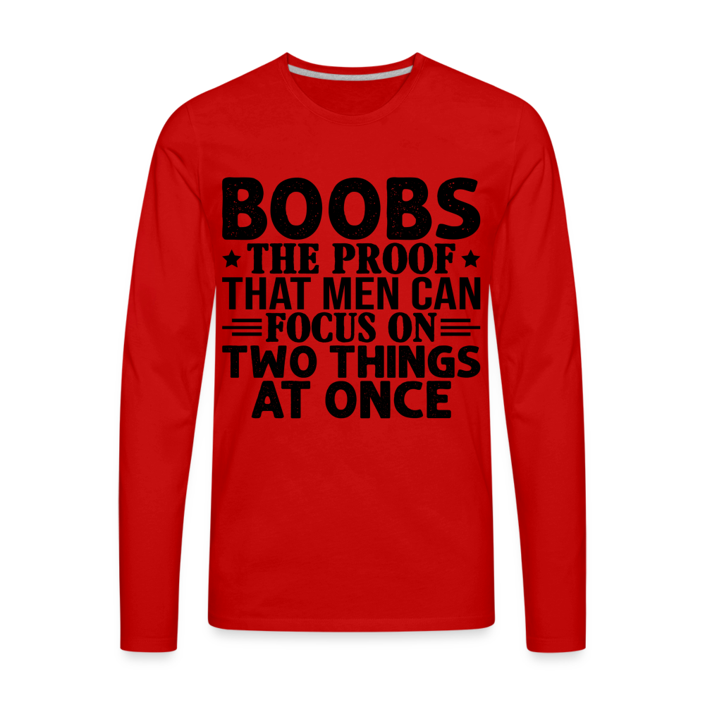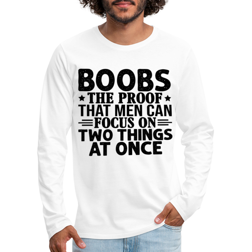 Embrace a lighthearted perspective with our "Boobs: The Proof That Men Can Focus On Two Things At Once" Men's Premium Long Sleeve T-Shirt. This premium long sleeve tee is more than just clothing; it's a playful and humorous way to add a touch of fun to your wardrobe.