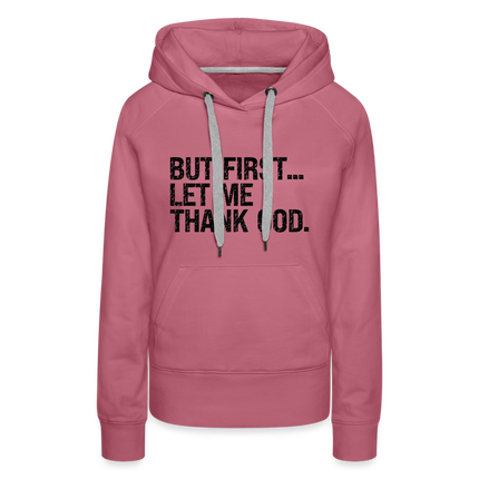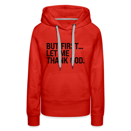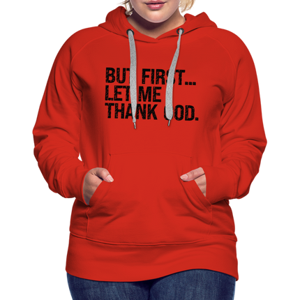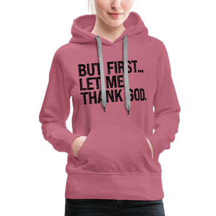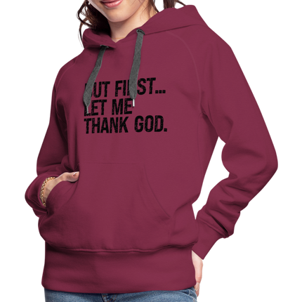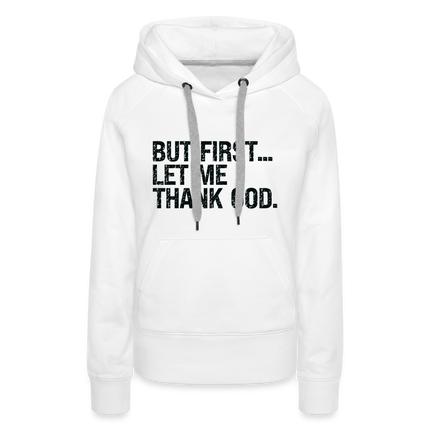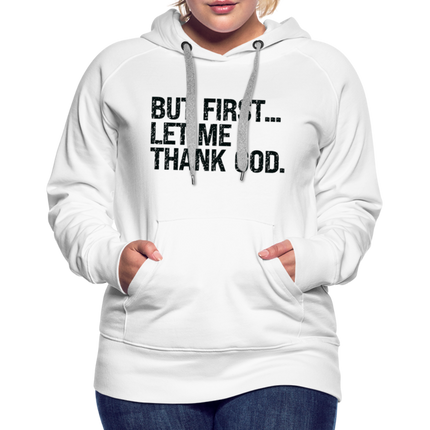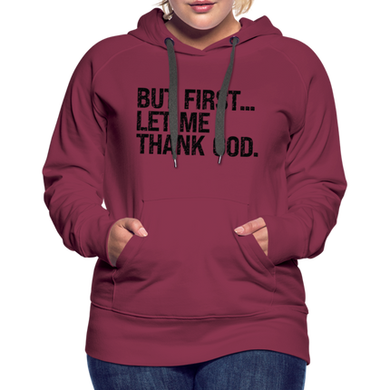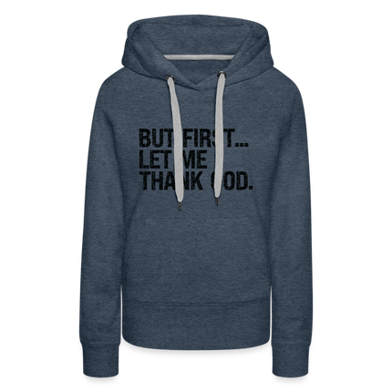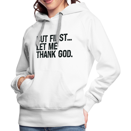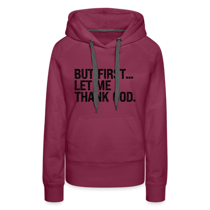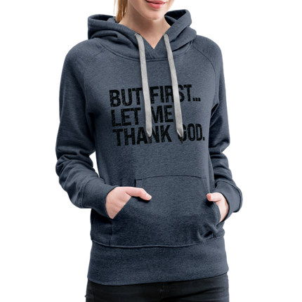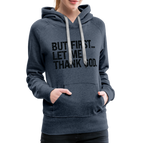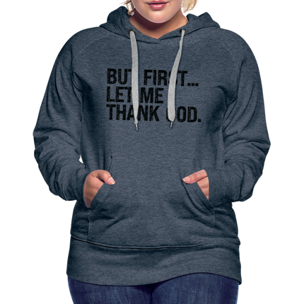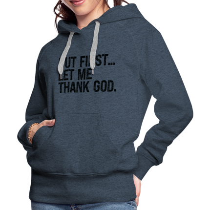 This But First Let Me Thank God Women’s Premium Hoodie has a Slimmer Fit – Consider One Size Up for Normal Fit.