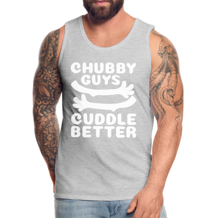 Whether you're a cuddle enthusiast or just appreciate a tank top with a cheerful message, this premium piece is a standout choice. Embrace the joy of cuddling, share a smile, and make a statement with the "Chubby Guys Cuddle Better" Men’s Premium Tank Top – a perfect blend of comfort and heartwarming style. Don't miss out on adding this delightful tank top to your collection – order yours now and let the cuddle-loving spirit shine!
