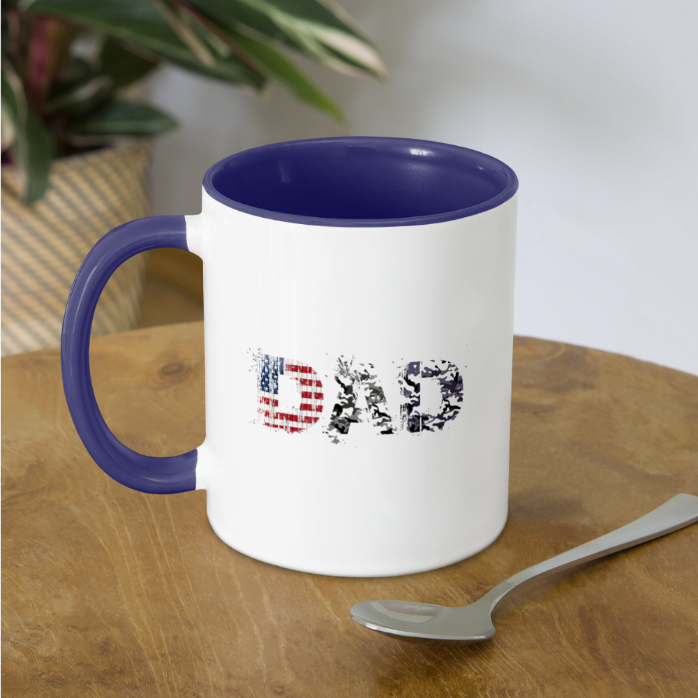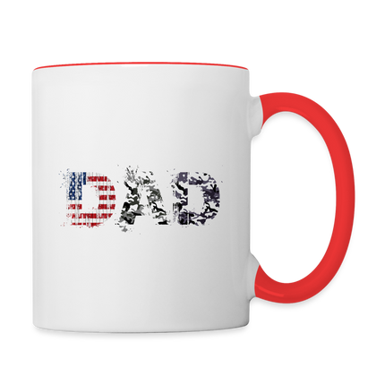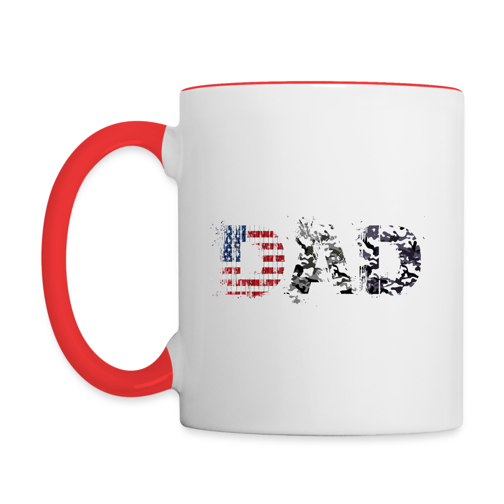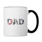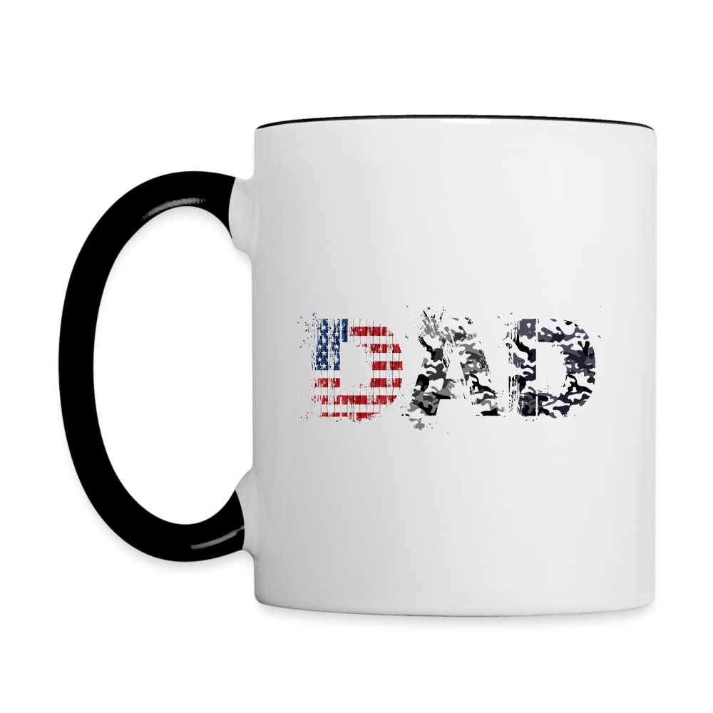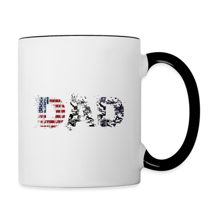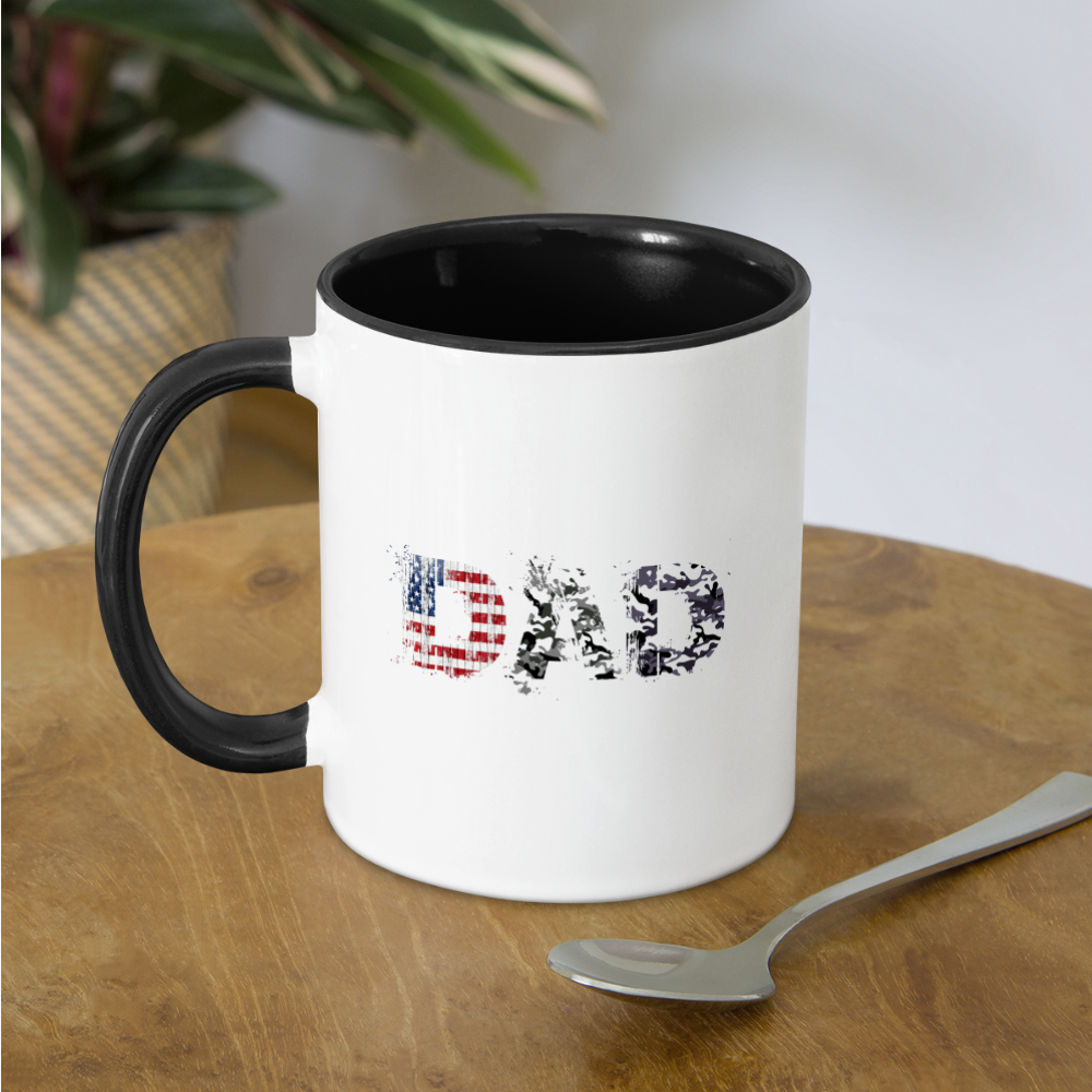 Introducing the "Dad Coffee Mug" - a patriotic and military-inspired addition to your morning routine. This coffee mug proudly celebrates the role of a dad with letters "dad" designed in an American flag pattern and Army camouflage. Crafted for both style and function, it's perfect for sipping your favorite brew while honoring your dad's service and dedication. The design resonates with military dads and their loved ones, creating a sense of shared pride and admiration. Elevate your coffee experience while showcasing your appreciation for your military dad with our "Dad Coffee Mug."
