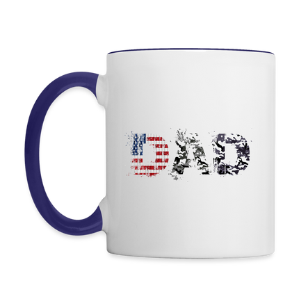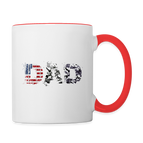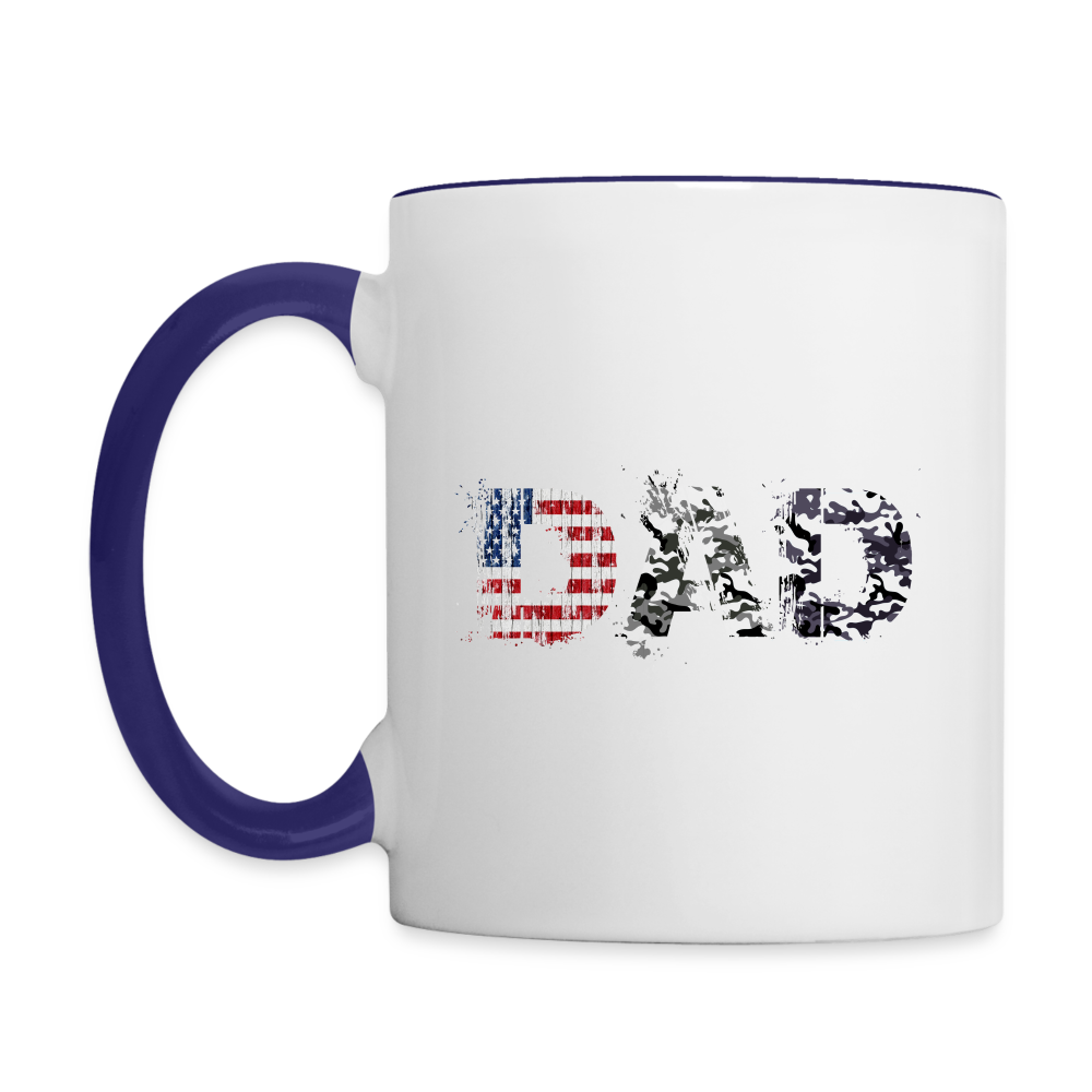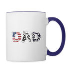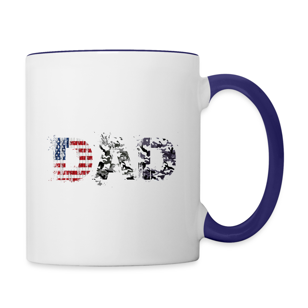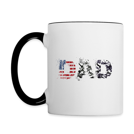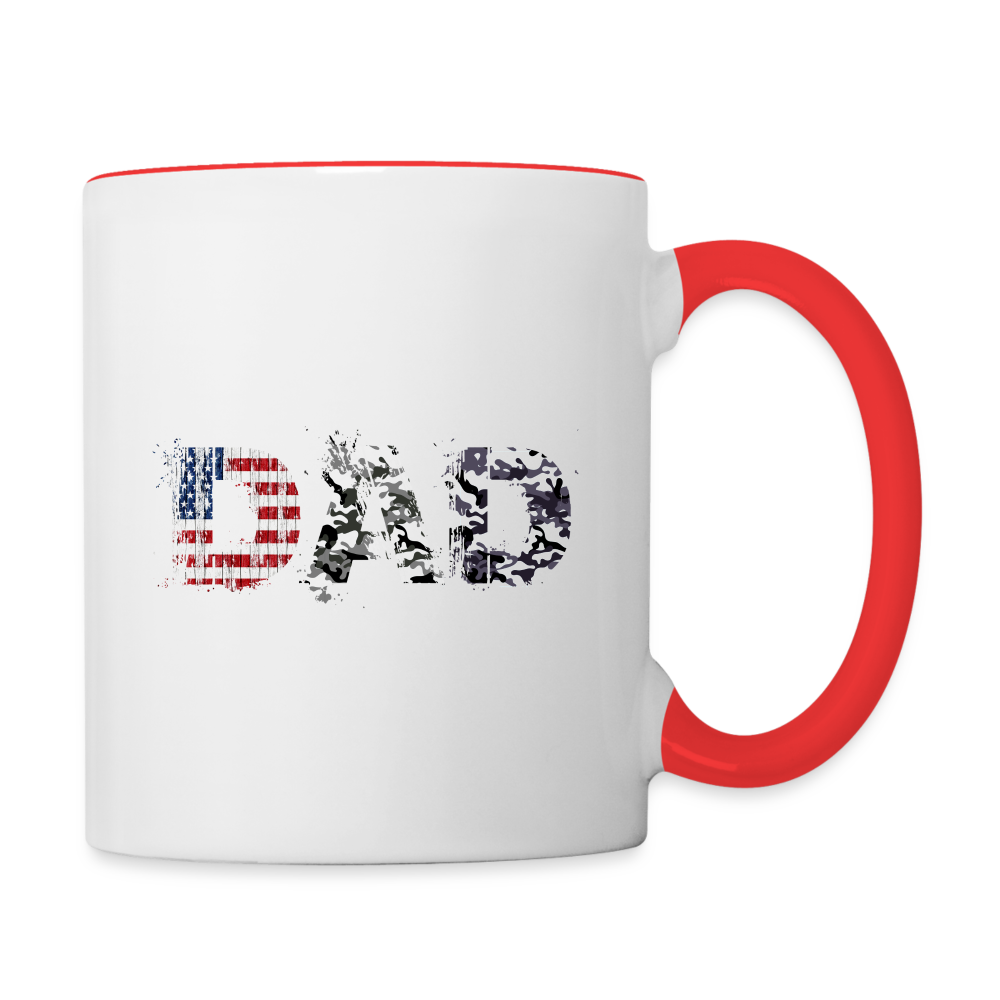Introducing the "Dad Coffee Mug" - a patriotic and military-inspired addition to your morning routine. This coffee mug proudly celebrates the role of a dad with letters "dad" designed in an American flag pattern and Army camouflage. Crafted for both style and function, it's perfect for sipping your favorite brew while honoring your dad's service and dedication. The design resonates with military dads and their loved ones, creating a sense of shared pride and admiration. Elevate your coffee experience while showcasing your appreciation for your military dad with our "Dad Coffee Mug."