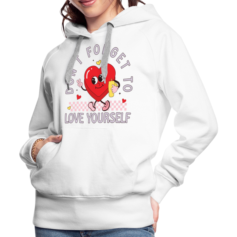 This Don't Forget To Love Yourself : Women’s Premium Hoodie has a Slimmer Fit – Consider One Size Up for Normal Fit.