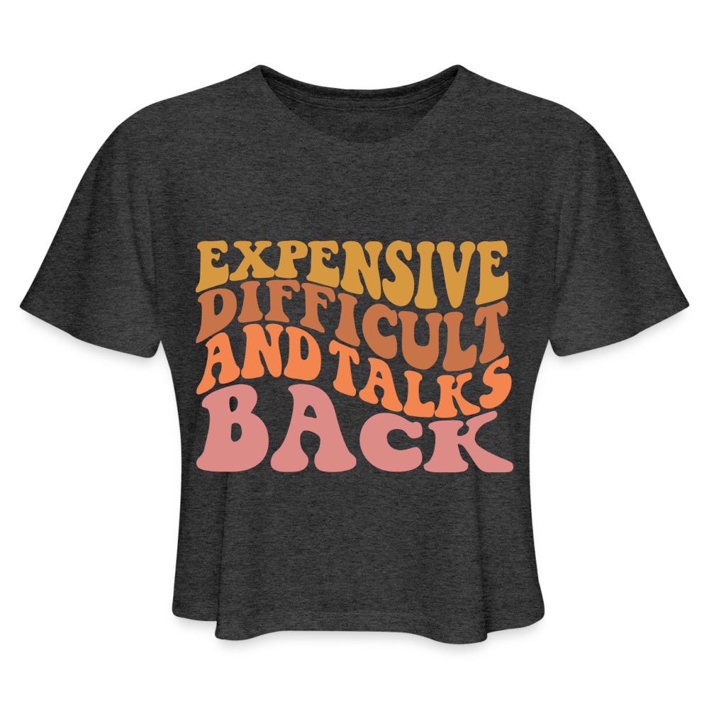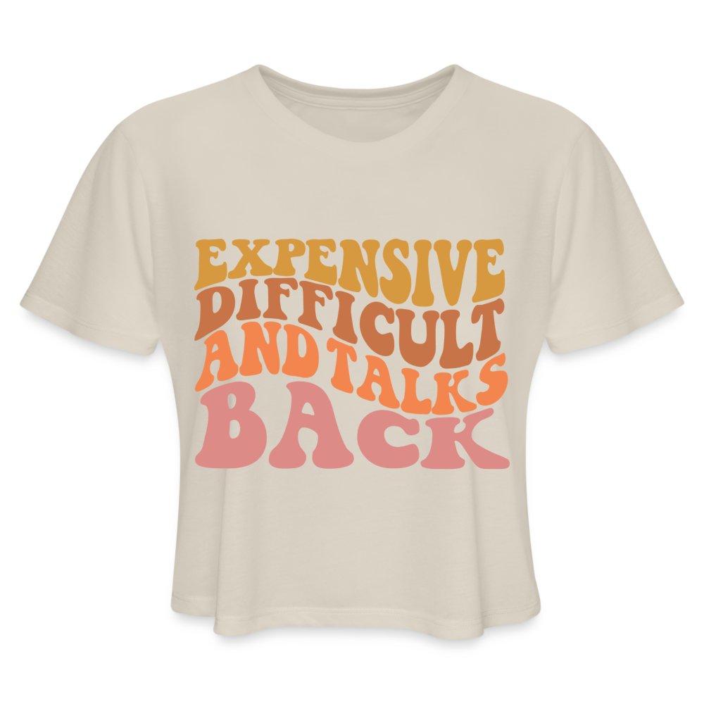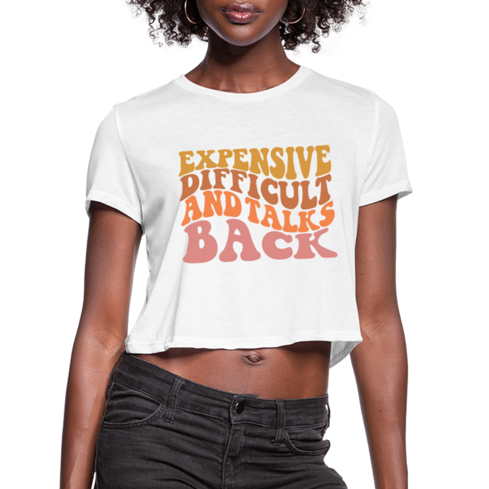 Introducing the "Expensive, Difficult, and Talks Back Women's Cropped T-Shirt" - a sassy and witty statement that captures life's playful challenges. This cropped t-shirt humorously describes situations that might not always go as planned with a touch of attitude. Crafted for both comfort and style, the fabric ensures you feel at ease while embracing the sassy side of life. The message resonates with those who appreciate the humorous twists and turns that come their way. Elevate your casual style while adding a dash of sass and wit to your everyday adventures with our "Expensive, Difficult, and Talks Back Women's Cropped T-Shirt."
