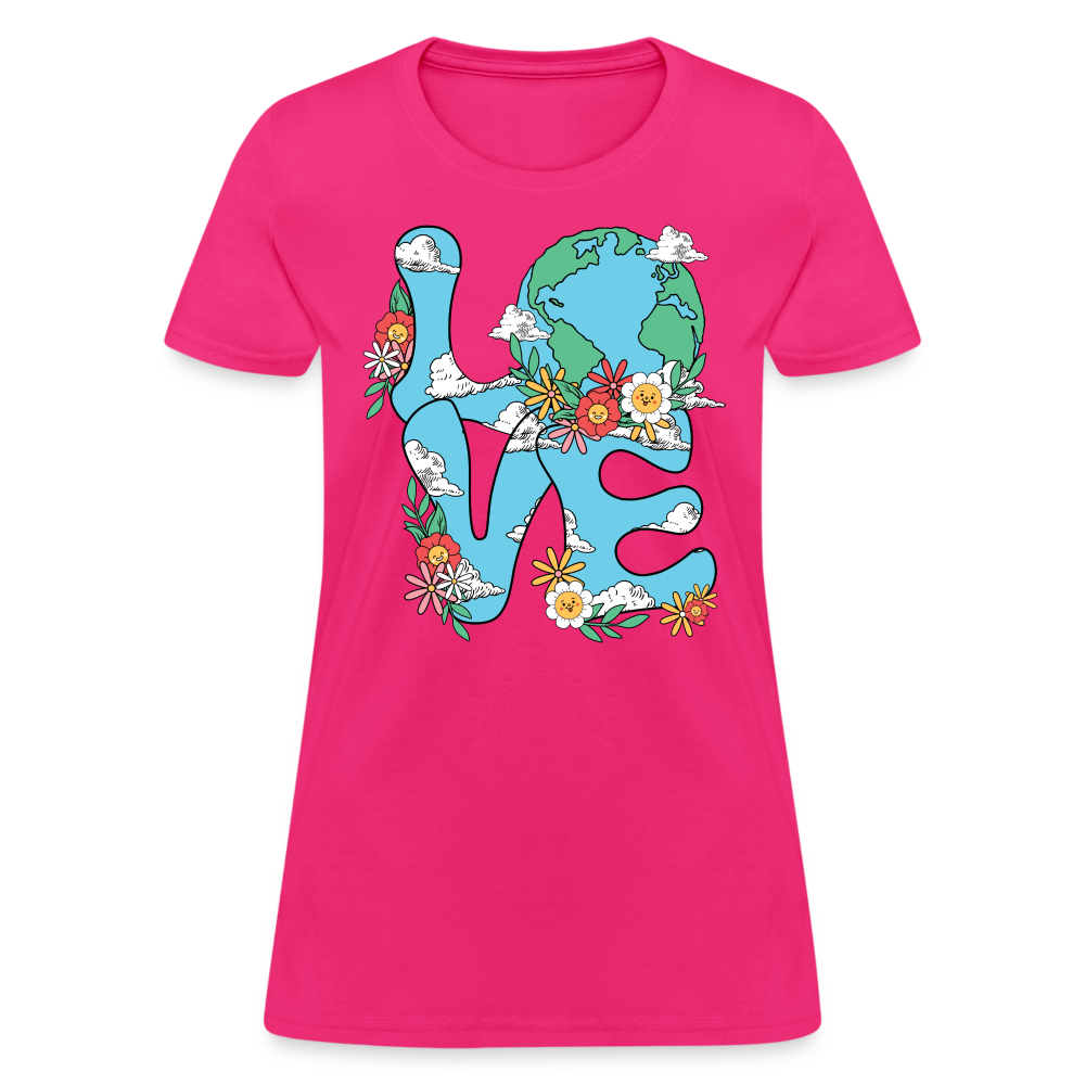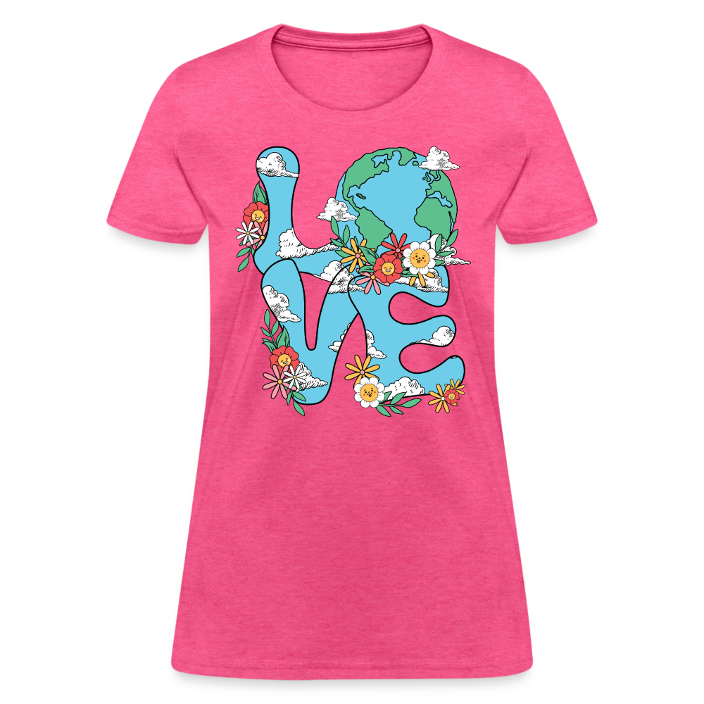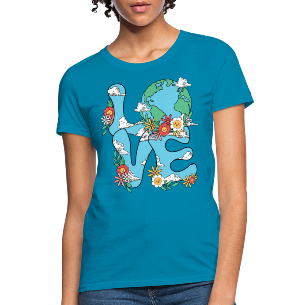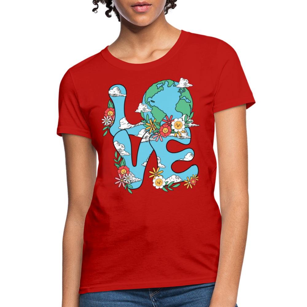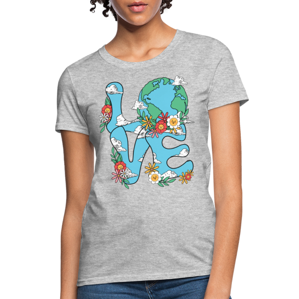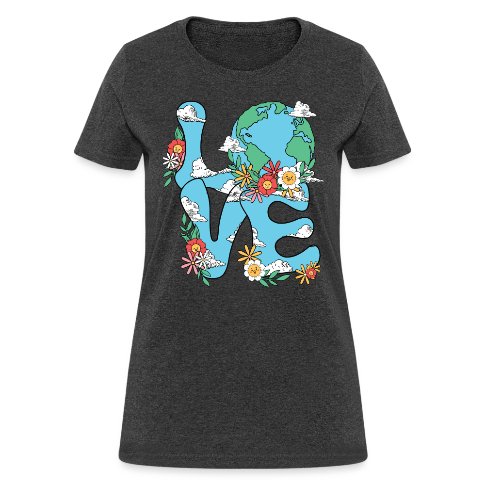 This Floral LOVE Earth Day Women's T-Shirt is Contoured and Side Seamed for a Feminine Fit – RUNS SMALL