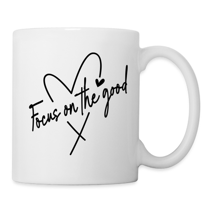 Designed with simplicity and elegance, this coffee mug features the uplifting message "Focus on the Good." Sip your favorite brew and feel the warmth of positivity with each use. The durable ceramic construction ensures a reliable companion for your daily moments of reflection.