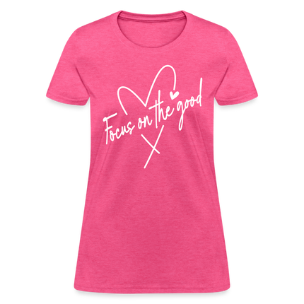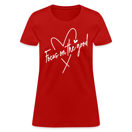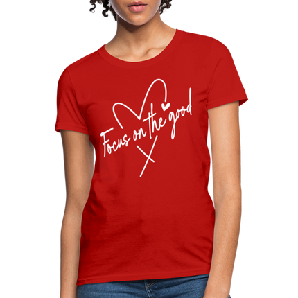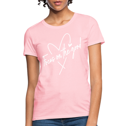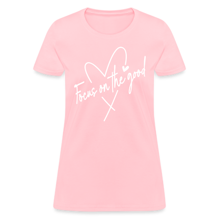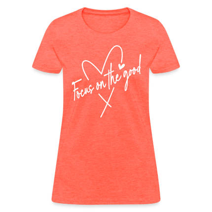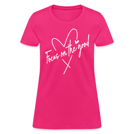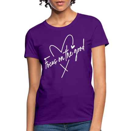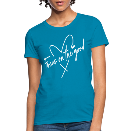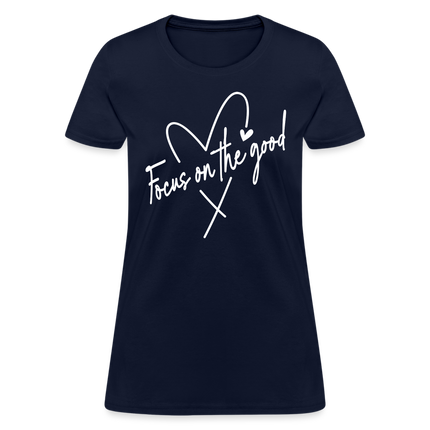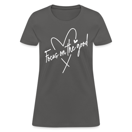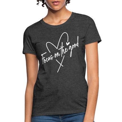 This Focus on the Good : Women's T-Shirt (White Letters) is Contoured and Side Seamed for a Feminine Fit – RUNS SMALL