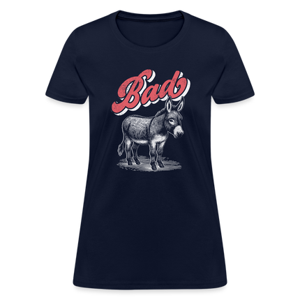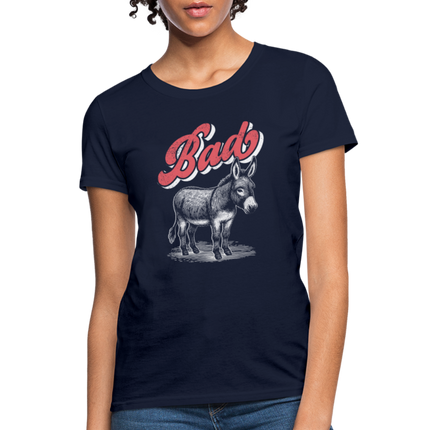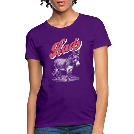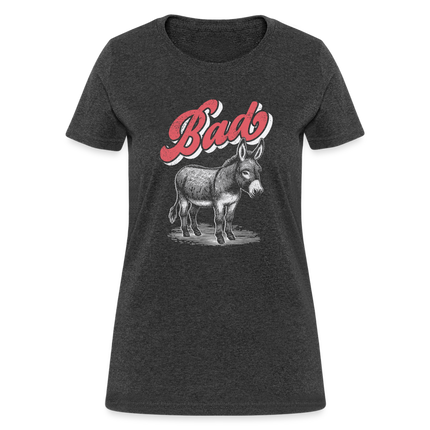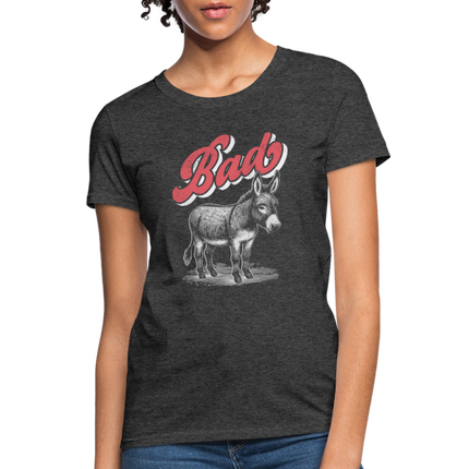 Introducing the "Funny Bad Ass (Donkey)" Women's Contoured T-Shirt – a playful and stylish way to showcase your bold personality. Featuring the witty design of the word "Bad" alongside an image of a donkey, this t-shirt cleverly spells out "Bad Ass," making it a fun and humorous addition to your wardrobe. It's perfect for anyone who embraces their inner badass or as a unique and entertaining gift.