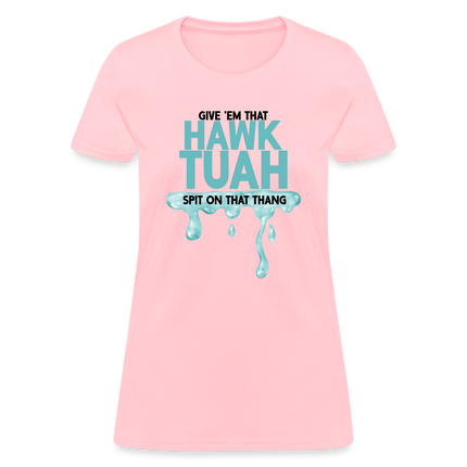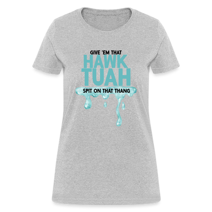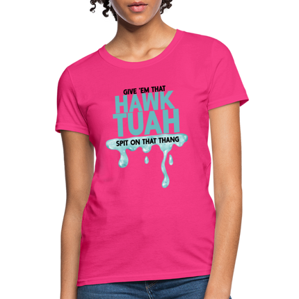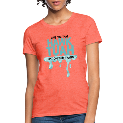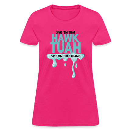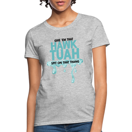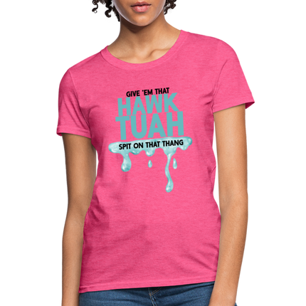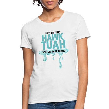 Celebrate boldness and a hint of cheekiness with our "Give Em That Hawk Tuah Spit On That Thang" Women's Contoured T-Shirt. Inspired by a viral sensation, this t-shirt combines playful humor with a stylish design, making it a perfect choice for those who love to stand out.