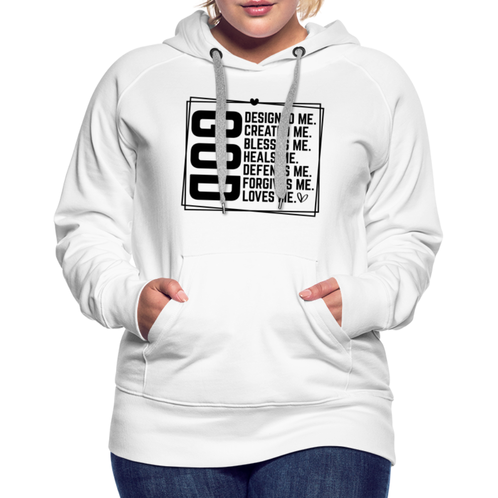 This GOD Designed Me Women’s Premium Hoodie has a Slimmer Fit – Consider One Size Up for Normal Fit.