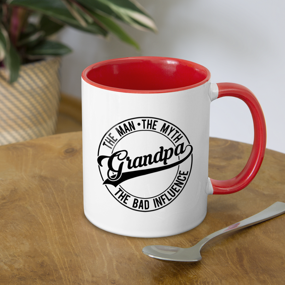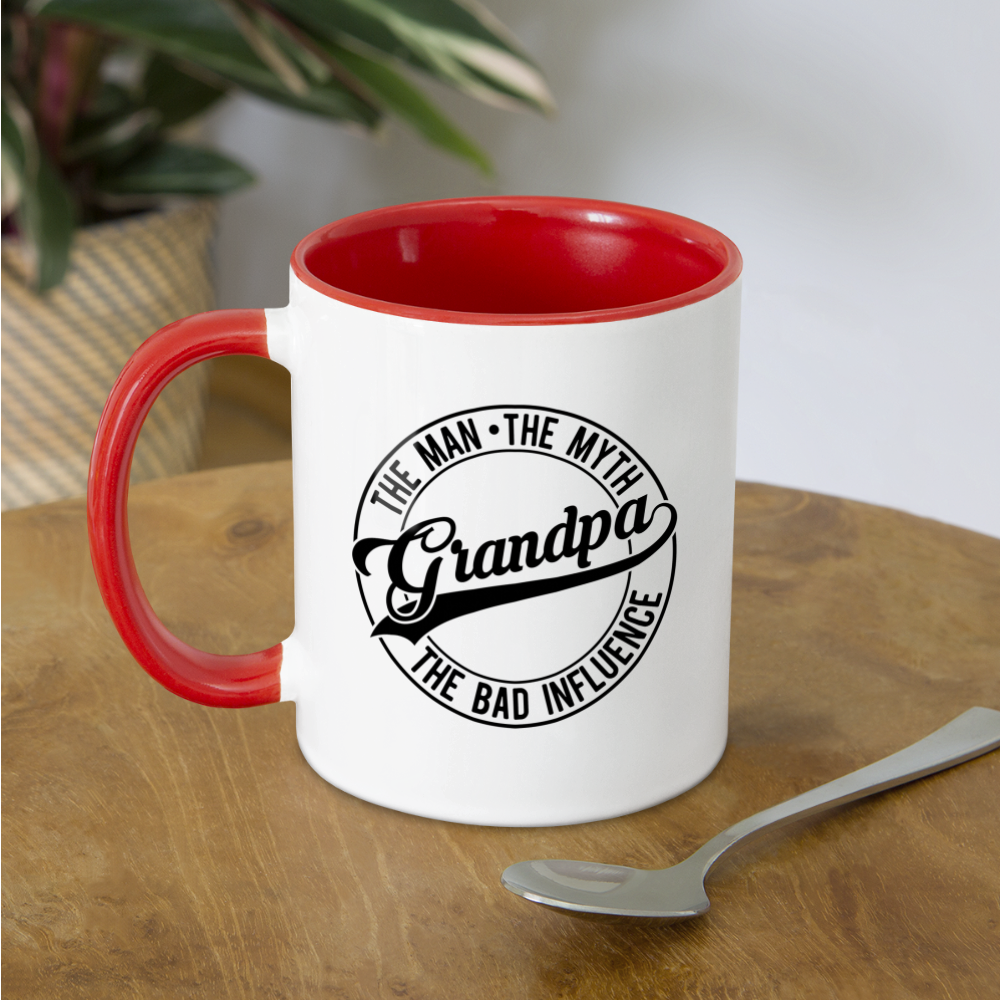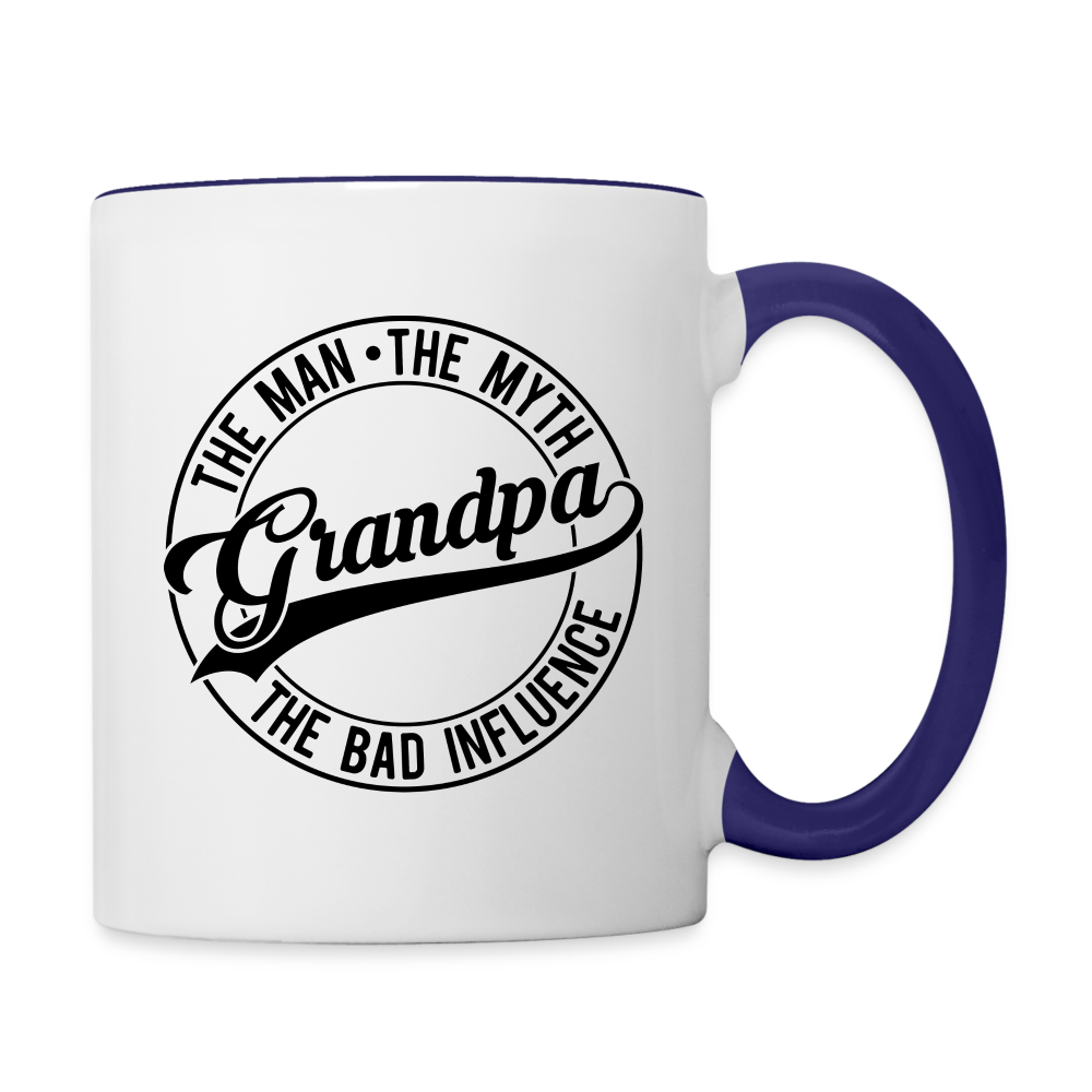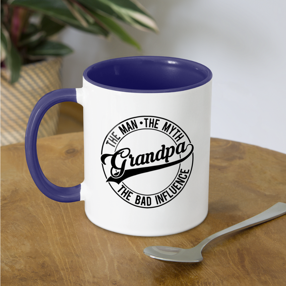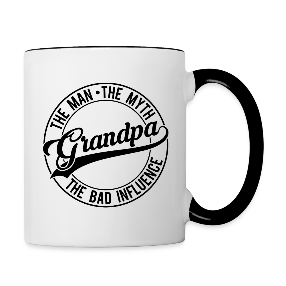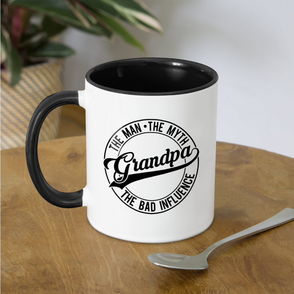 Introducing the "Grandpa The Bad Influence Coffee Mug" - a playful and endearing addition to your morning routine. This coffee mug lovingly celebrates the mischievous and legendary status of grandpas with the text "The Man, The Myth, The Bad Influence" centered around "Grandpa." Crafted for both style and function, it's perfect for sipping your favorite brew while honoring the cherished role of a grandpa with a touch of humor. The design resonates with grandpas and their loved ones, creating a sense of shared affection and lightheartedness. Elevate your coffee experience while celebrating the delightful influence of Grandpa with our "Grandpa The Bad Influence Coffee Mug."