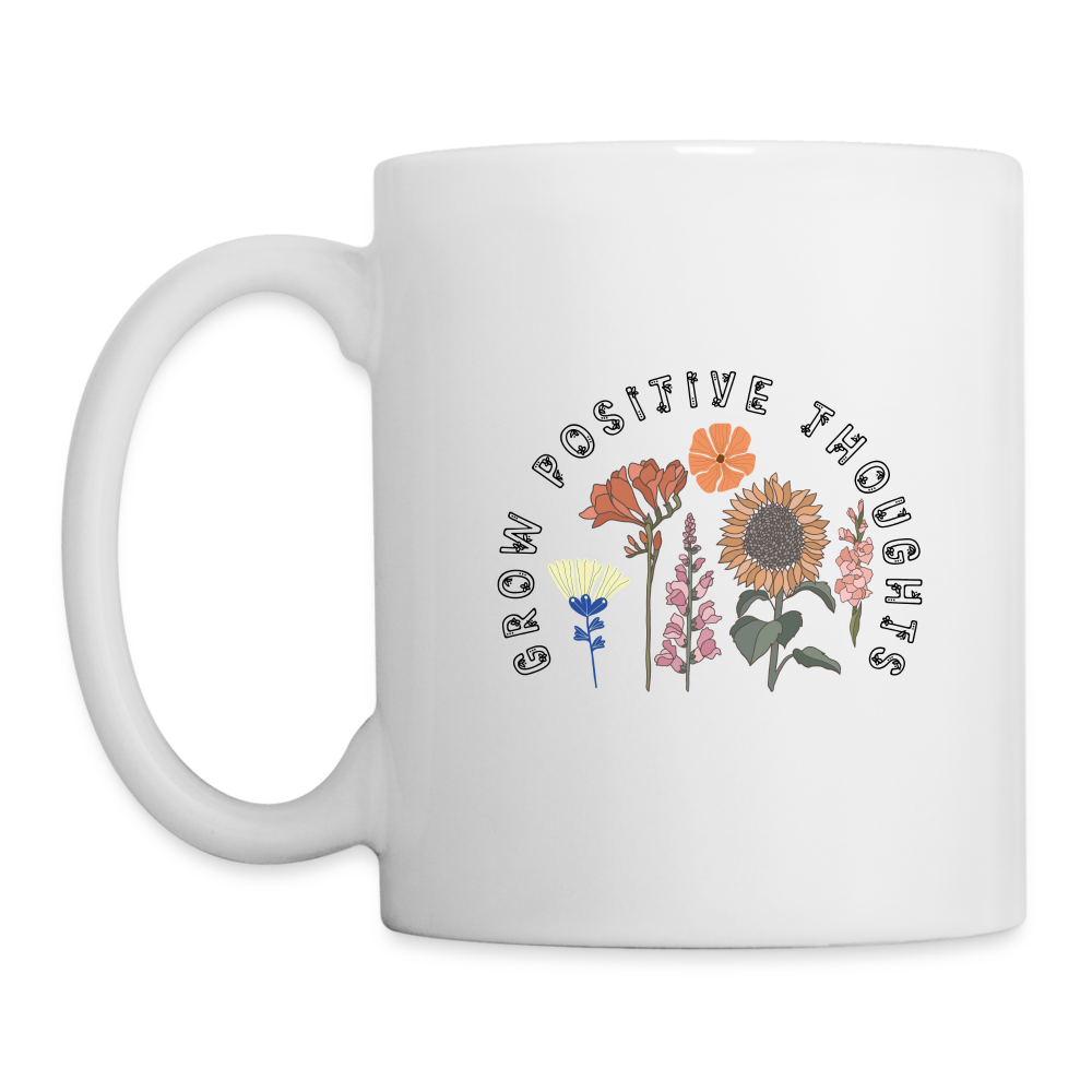 Introducing the "Grow Positive Thoughts Coffee Mug" - a beautiful and inspiring way to start your day with a dose of positivity. This coffee mug features the uplifting message "Grow Positive Thoughts" alongside an array of vibrant flowers, symbolizing the nurturing of a positive mindset. Crafted for both style and function, this mug is perfect for sipping your favorite brew while embracing the power of positive thinking. It resonates with those who appreciate the beauty of optimism, creating a sense of shared inspiration. Elevate your coffee routine and cultivate positivity with our "Grow Positive Thoughts Coffee Mug."