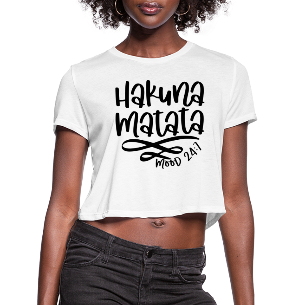 In summary, the "Hakuna Matata" Women's Cropped T-Shirt is a fashionable and spirited addition to your wardrobe. It celebrates the philosophy of living without worries and embracing each day with joy. So, wear it proudly and spread the message that life is meant to be enjoyed to the fullest.
