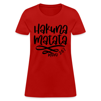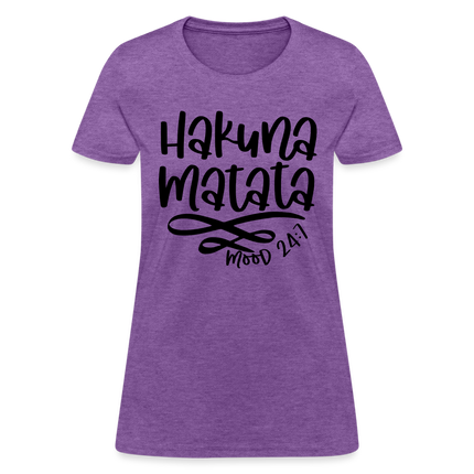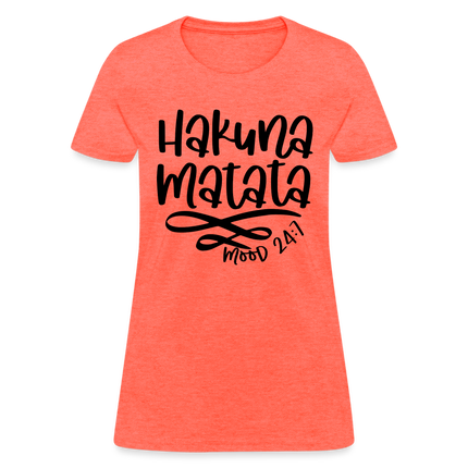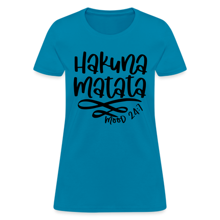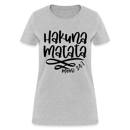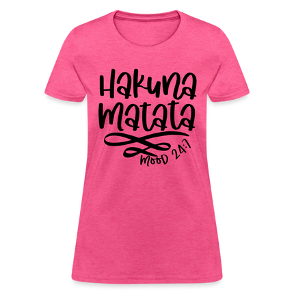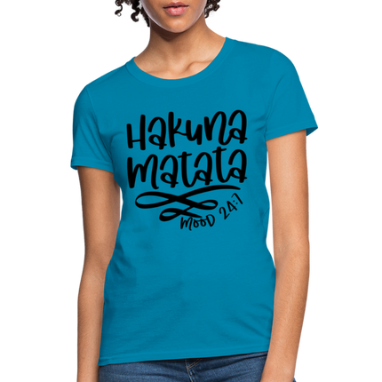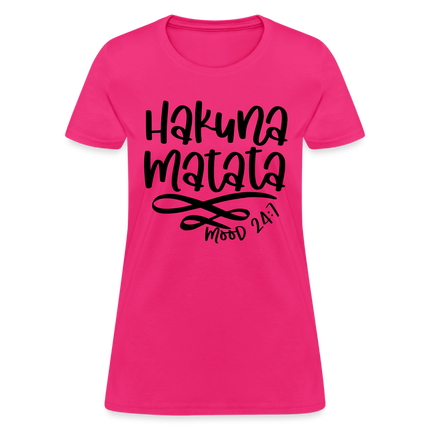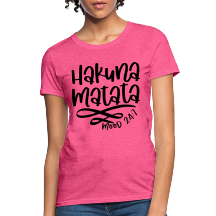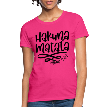 Wearing the "Hakuna Matata" Women's T-shirt is a statement of your commitment to living life with a joyful and laid-back outlook. It's a reminder that, even in the face of challenges, maintaining a positive attitude can make a world of difference.