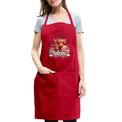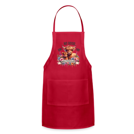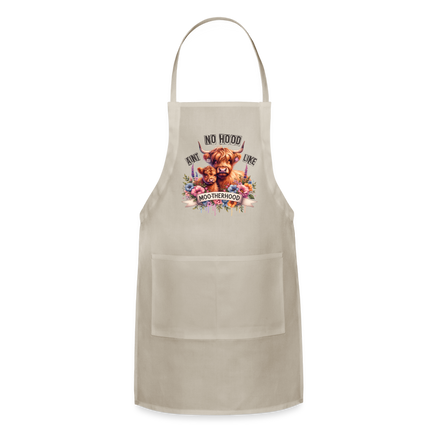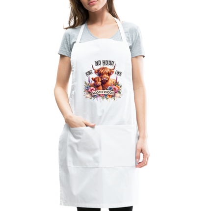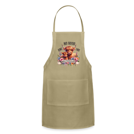 Embrace the special bond of motherhood and add a dash of fun to your culinary adventures with the "Highland Cow - Aint No Hood Like Moo-Therhood" Adjustable Apron. Order yours today and celebrate the beauty of motherly love with every task!
