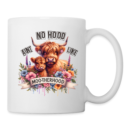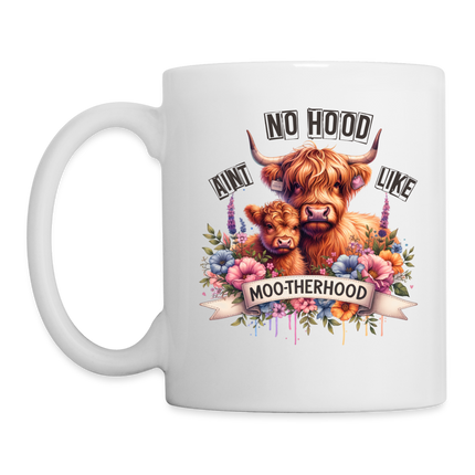 Embrace the special bond of motherhood and start your day with a smile using the "Highland Cow - Aint No Hood Like Moo-Therhood" Coffee Mug. Order yours today and celebrate the beauty of motherly love with every sip!