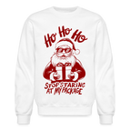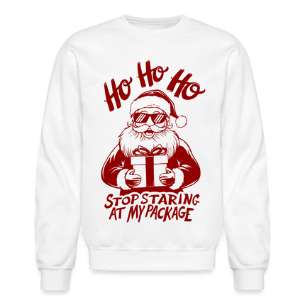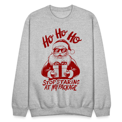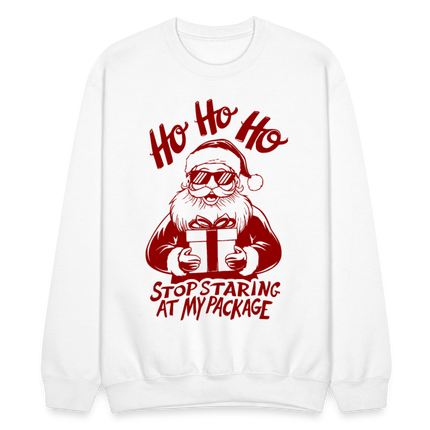 This Ho Ho Ho Stop Staring At My Package (Funny Christmas Santa) Sweatshirt has a Normal Fit (Men's Sizing)