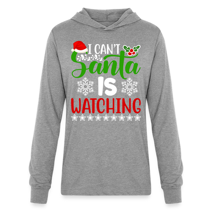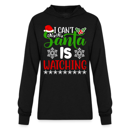 Pair it effortlessly with your favorite jeans or leggings for a look that's as festive as it is laid-back. The "I Can't Santa Is Watching Hoodie Shirt" is the ideal choice for those who want to wear their holiday spirit with a mischievous grin and ease.