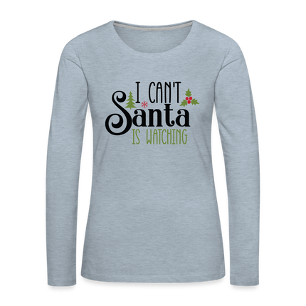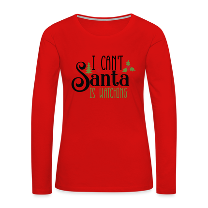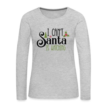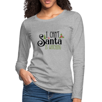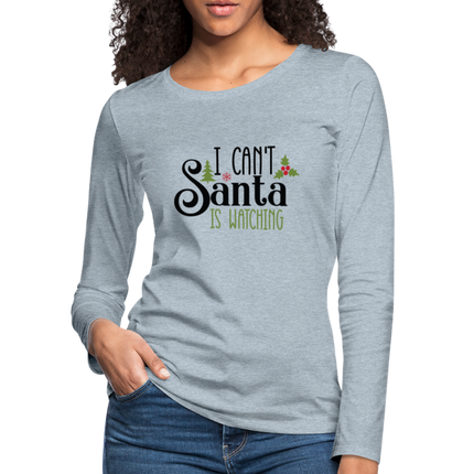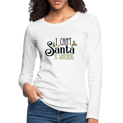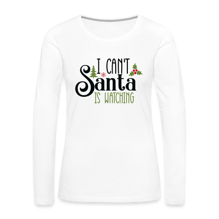Pair it with your favorite jeans or leggings for a look that's as festive as it is refined. The "I Can't Santa Is Watching - Women's Premium Long Sleeve T-Shirt" is the ideal choice for infusing your winter wardrobe with the warmth and wonder of Christmas!