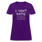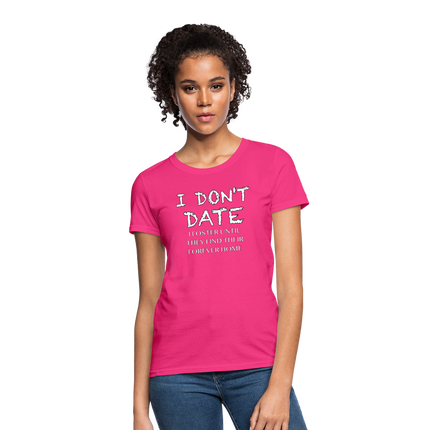 This I Don't Date, I Foster Home Women's T-Shirt (Funny Dating Humor) is Contoured and Side Seamed for a Feminine Fit – RUNS SMALL