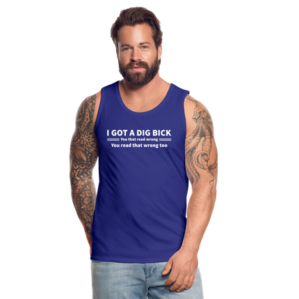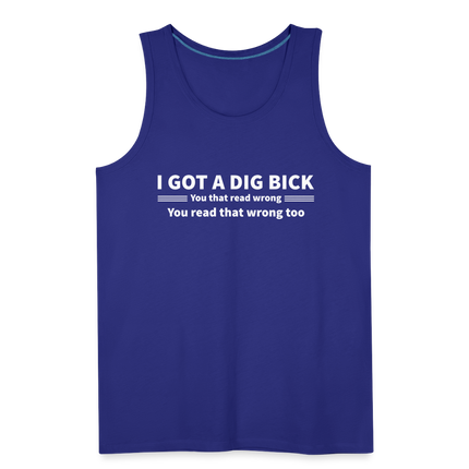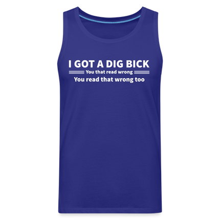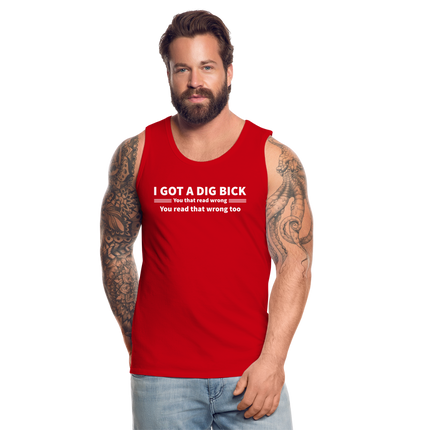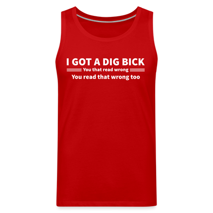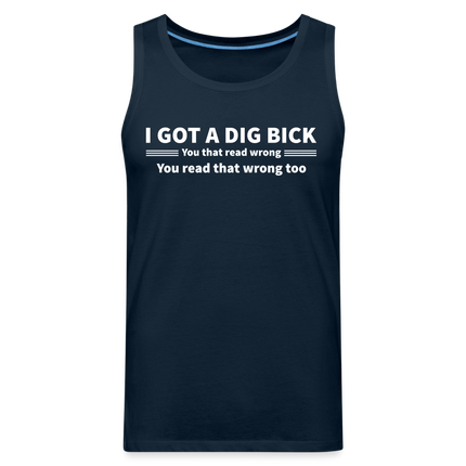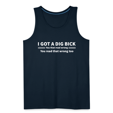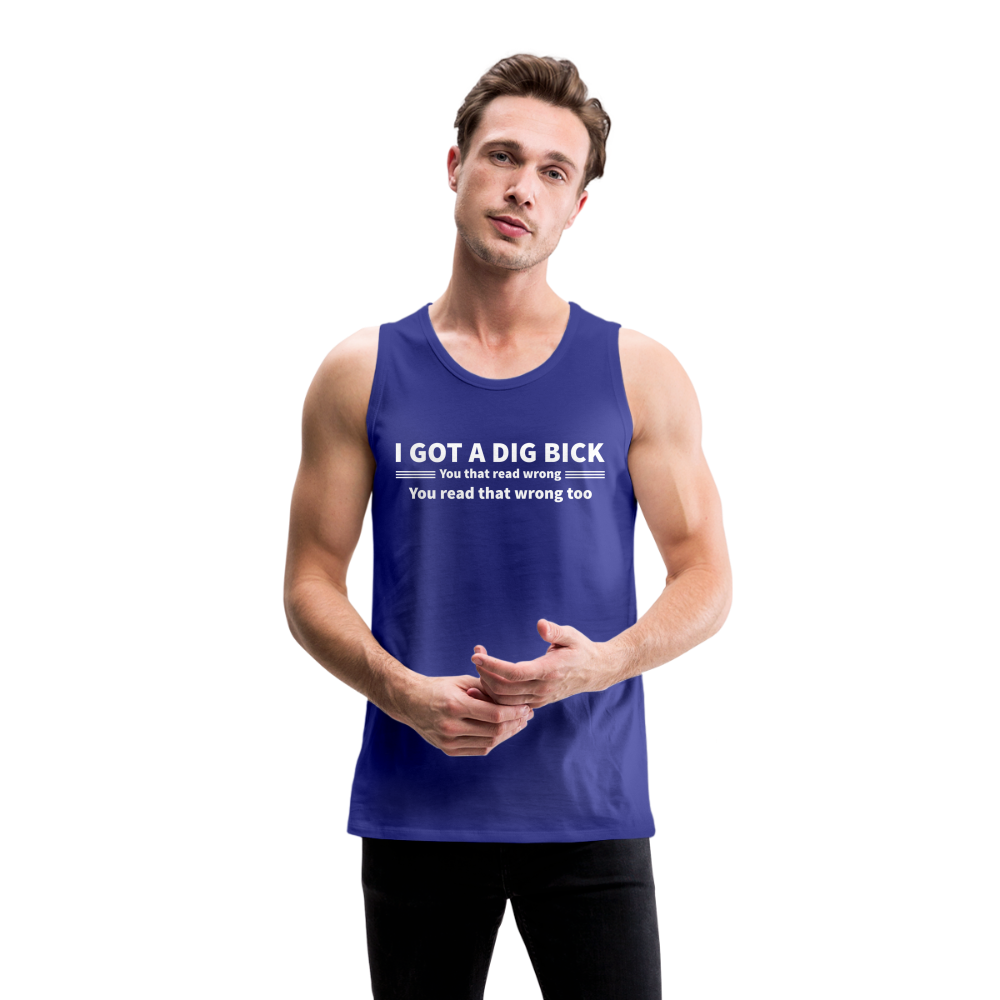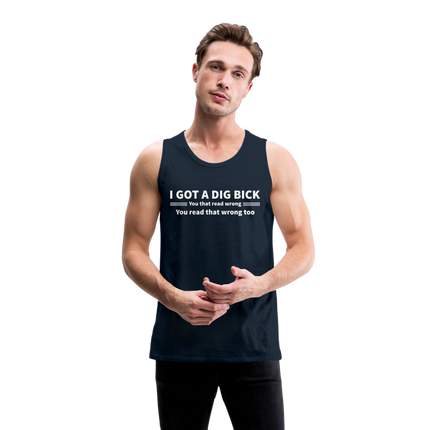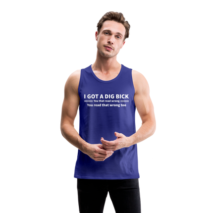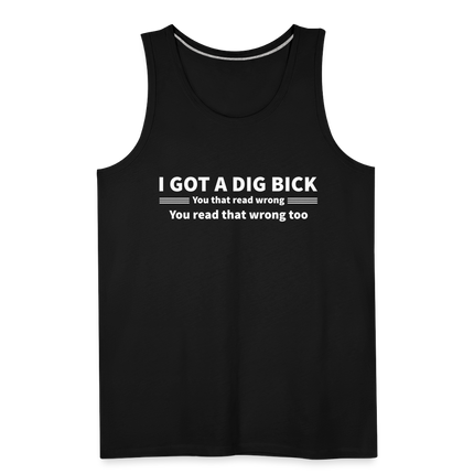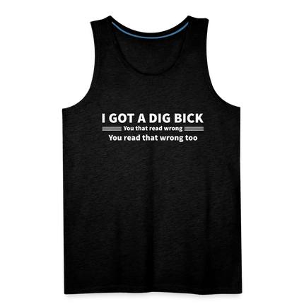 This I Got a Dig Bick (You That Read Wrong) Men’s Premium Tank Top has a Normal Fit