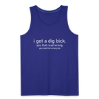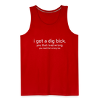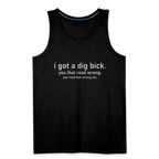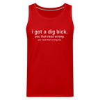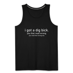This I Got a Dig Bick (You Read That Wrong) Men’s Premium Tank Top has a Normal Fit