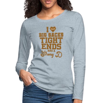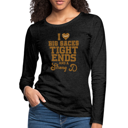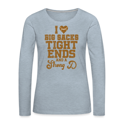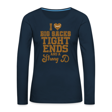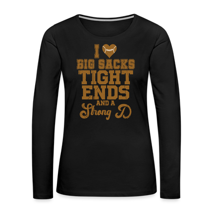 I Heart Big Sacks Tight Ends and A Strong D Women's Premium Long Sleeve T-Shirt (Football Season)