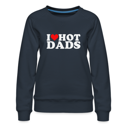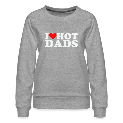 This I Heart Hot Dads (Funny I Love Hot Dads) Women’s Premium Sweatshirt has a Slimmer Fit