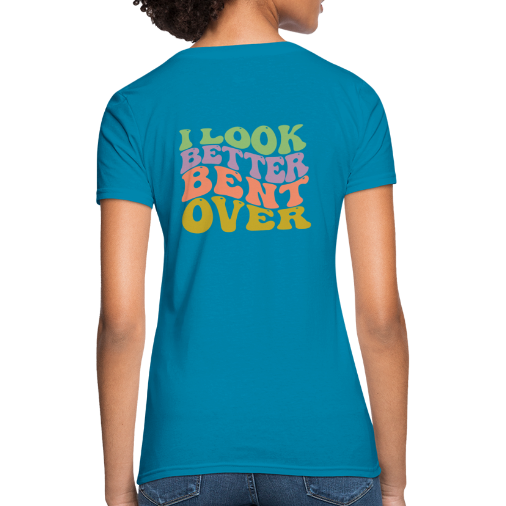 This I Look Better Bent Over Women's Contoured T-Shirt is Contoured and Side Seamed for a Feminine Fit – RUNS SMALL