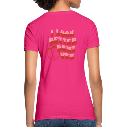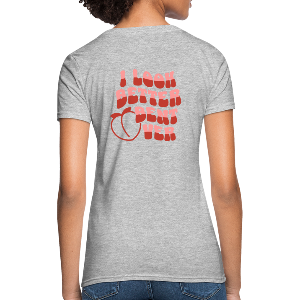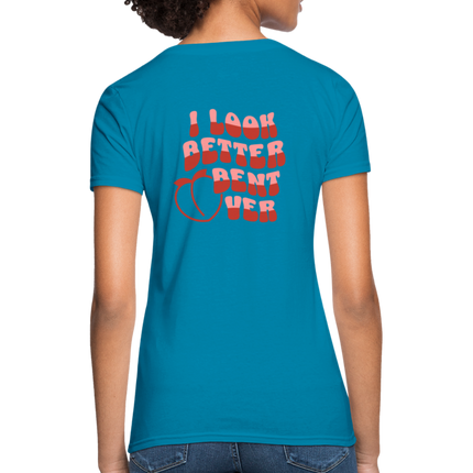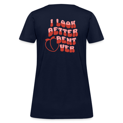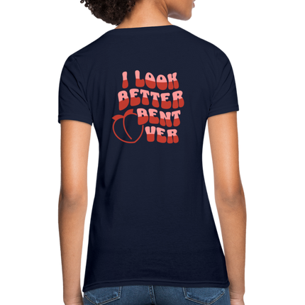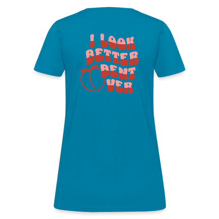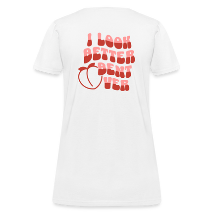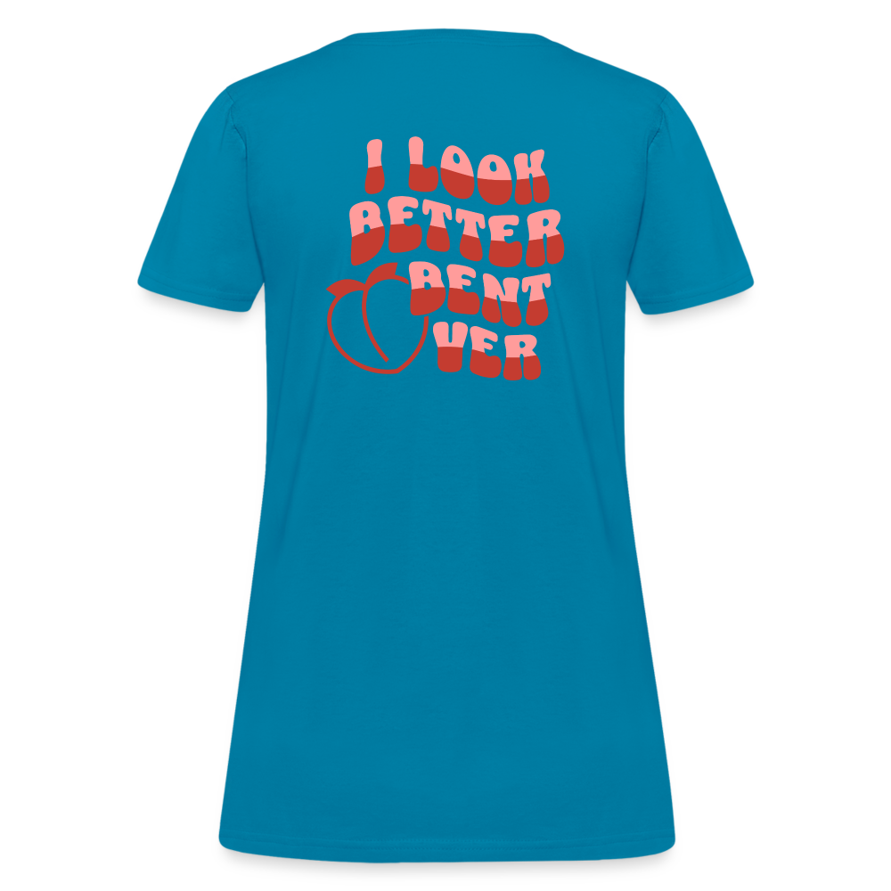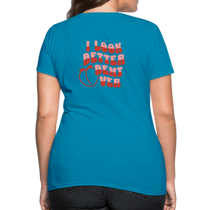 This I Look Better Bent Over Women's Contoured T-Shirt (Image on Rear) is Contoured and Side Seamed for a Feminine Fit – RUNS SMALL