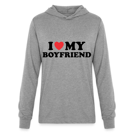 Stay cozy and stylish with our "I Love My Boyfriend" Long Sleeve Hoodie Shirt. This comfortable and versatile hoodie shirt features the heartfelt message with love represented in the form of a red heart, symbolizing the deep affection you have for your boyfriend. Whether you're heading out for a casual day or relaxing at home, this long sleeve hoodie shirt is a perfect choice for expressing your love.