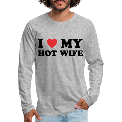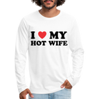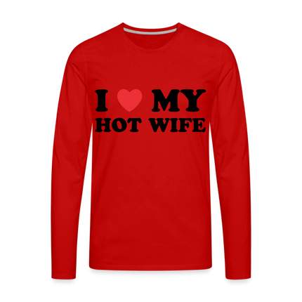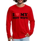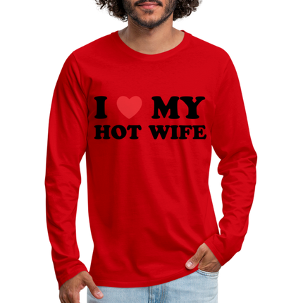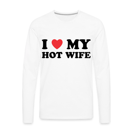 Embrace warmth and style with our "I Love My Hot Wife" Men's Premium Long Sleeve T-Shirt in black letters. This comfortable and chic long-sleeve tee features the heartfelt message with love represented in the form of a red heart, symbolizing the deep affection you have for your hot wife. Whether you're spending a casual day together or heading out for a special occasion, this premium shirt allows you to express your love with sophistication.