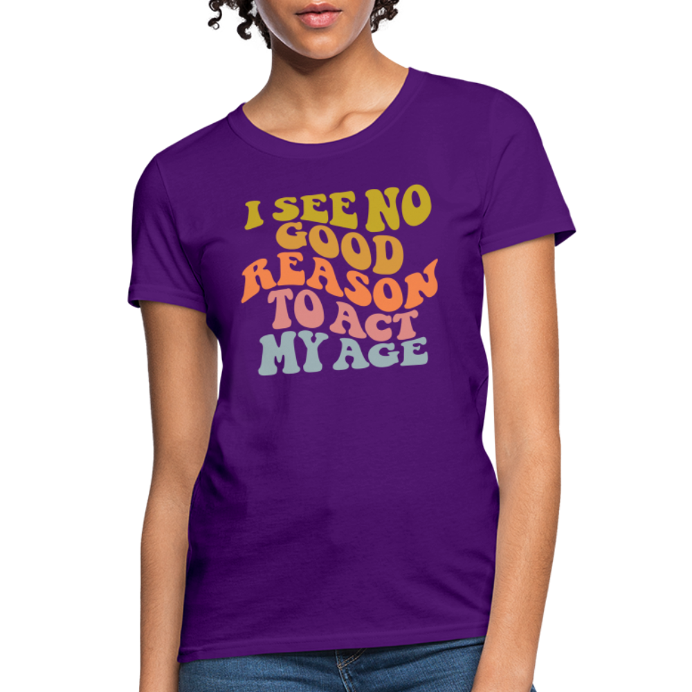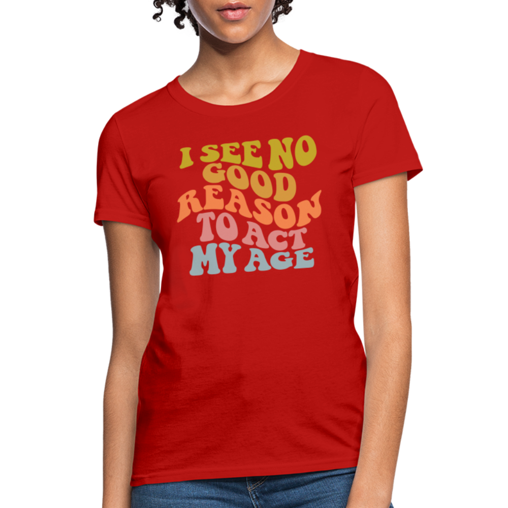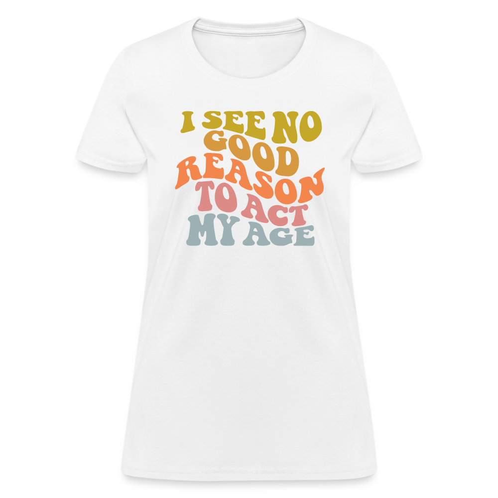 This I See No Good Reason To Act My Age Women's Contoured T-Shirt is Contoured and Side Seamed for a Feminine Fit – RUNS SMALL