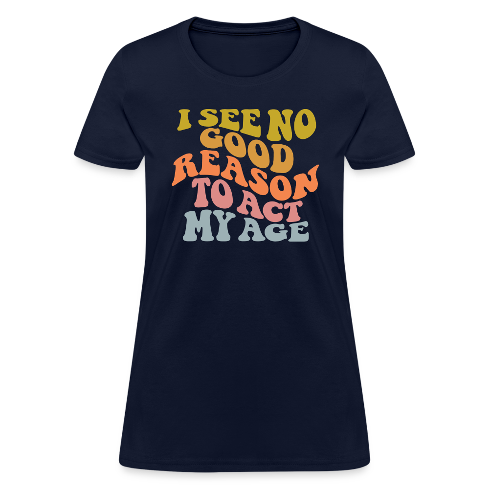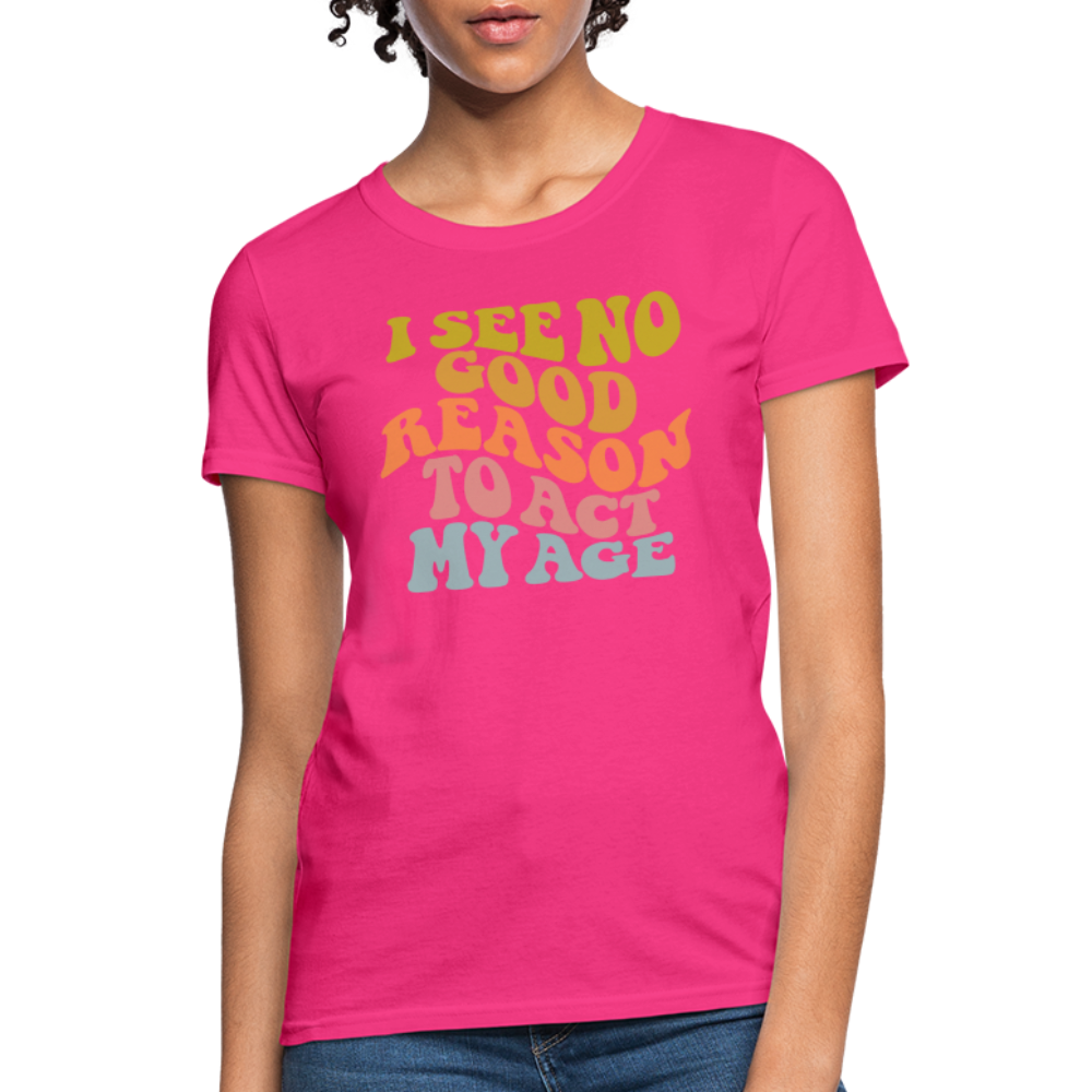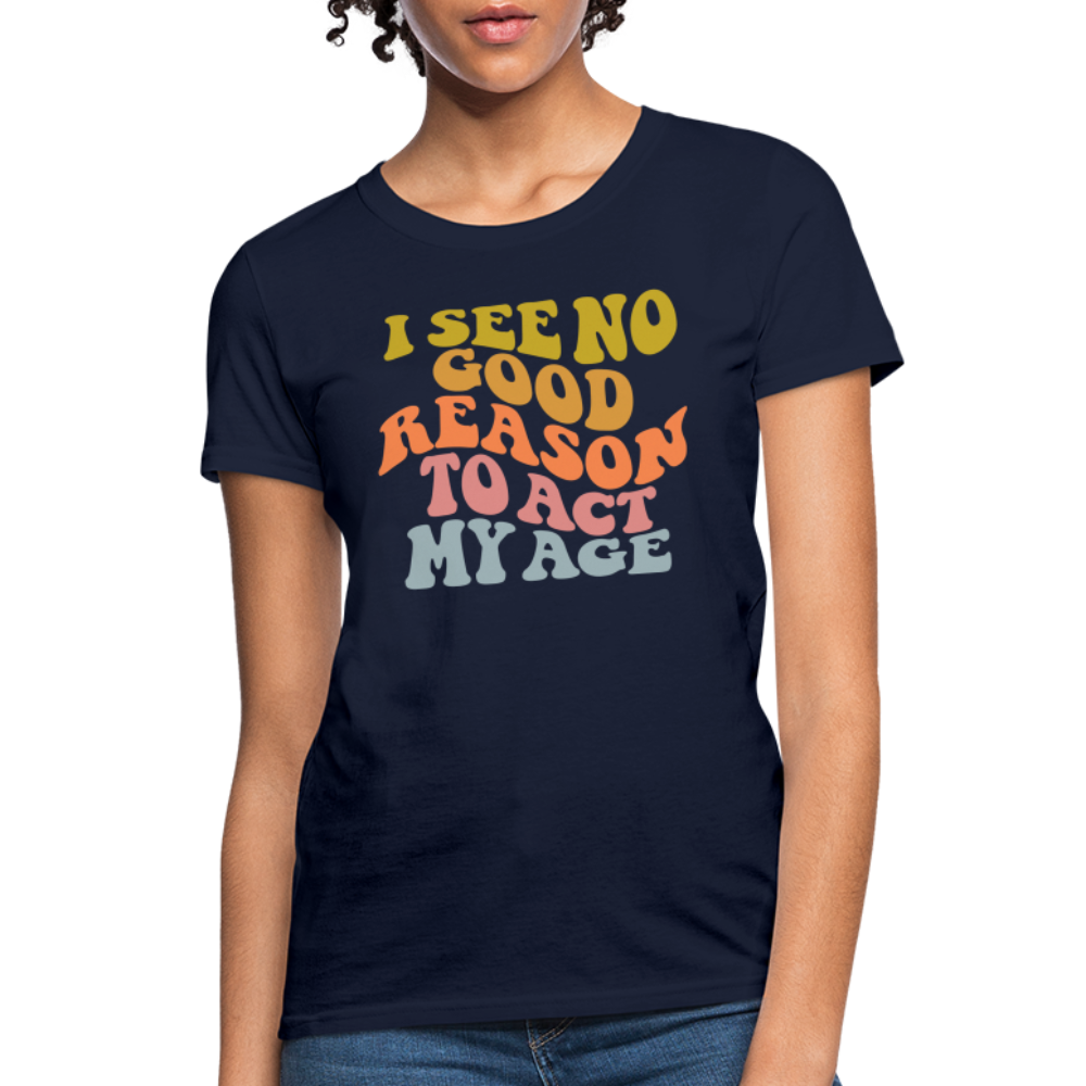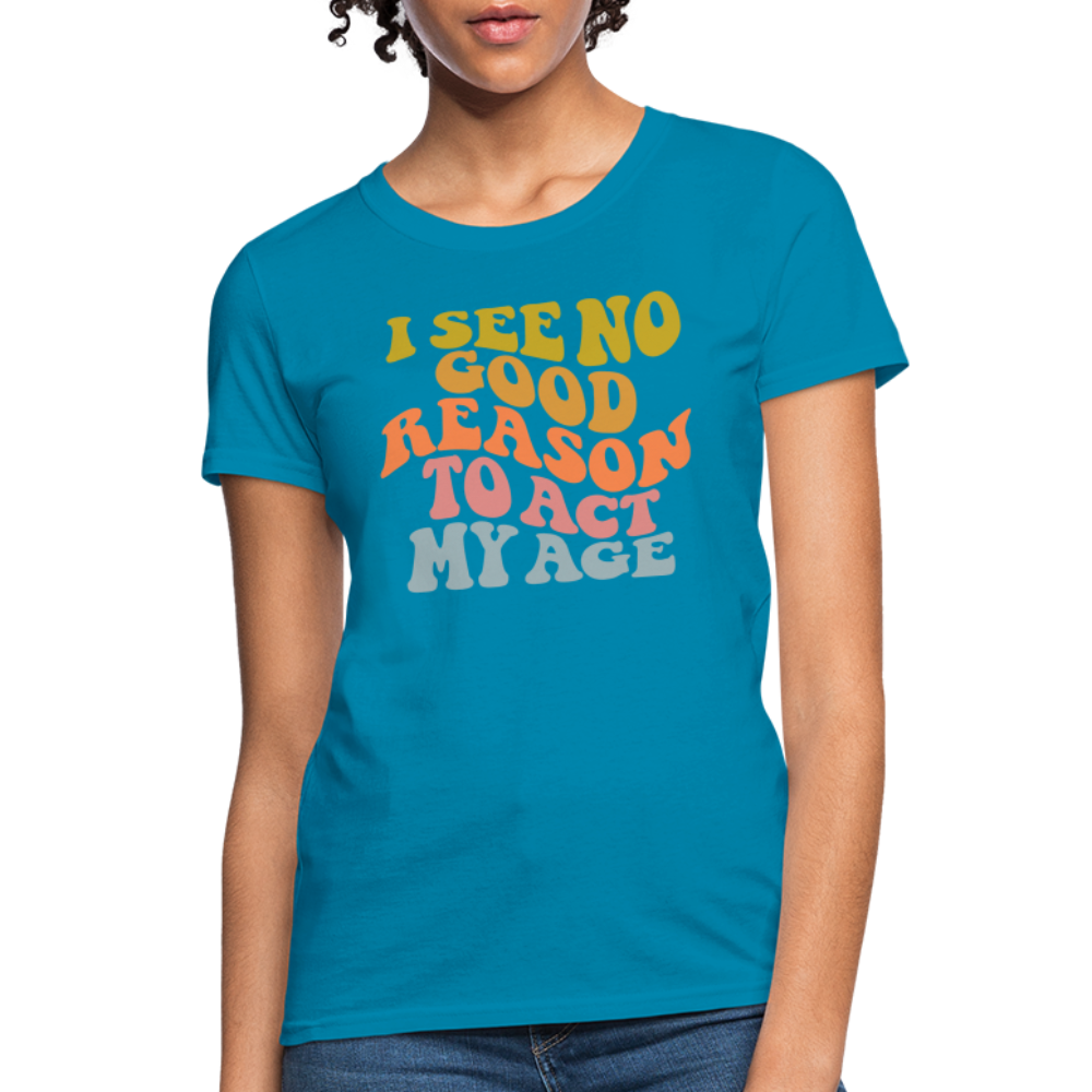 This I See No Good Reason To Act My Age Women's Contoured T-Shirt is Contoured and Side Seamed for a Feminine Fit – RUNS SMALL