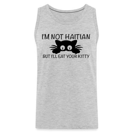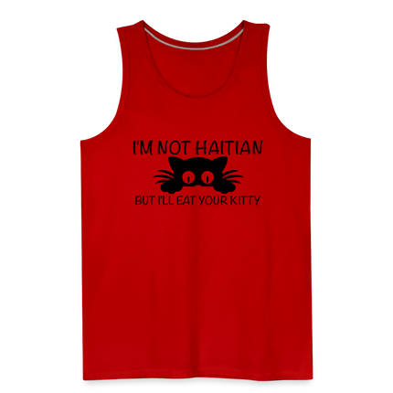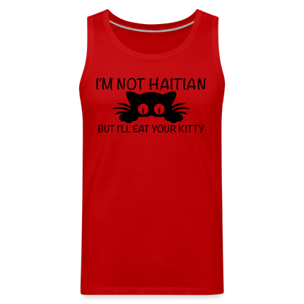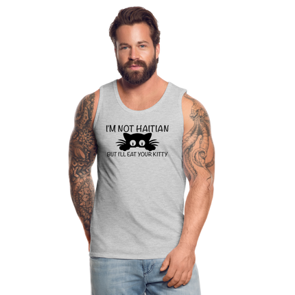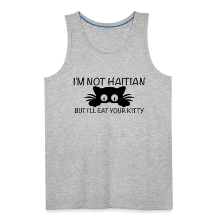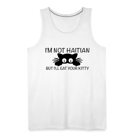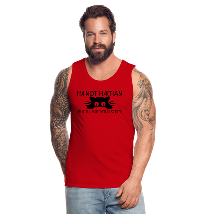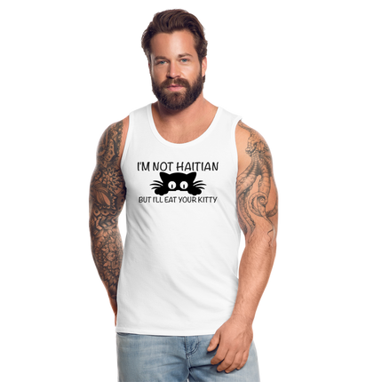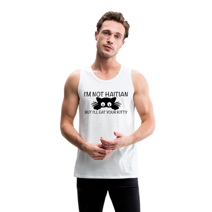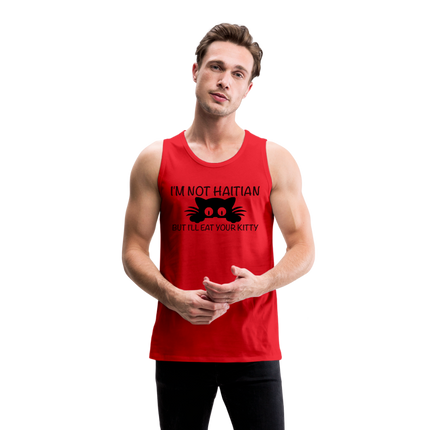 This I'm Not Haitian But I'll Eat Your Kitty Men’s Premium Tank Top has a Normal Fit