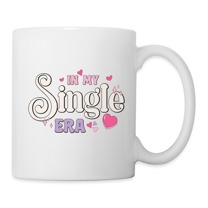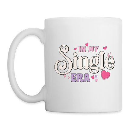 The text "In My Single Era" is elegantly displayed on the mug, capturing the essence of this unique phase in your life. Sip your favorite brew from this mug, making a statement with each sip and expressing your confidence in your single journey.