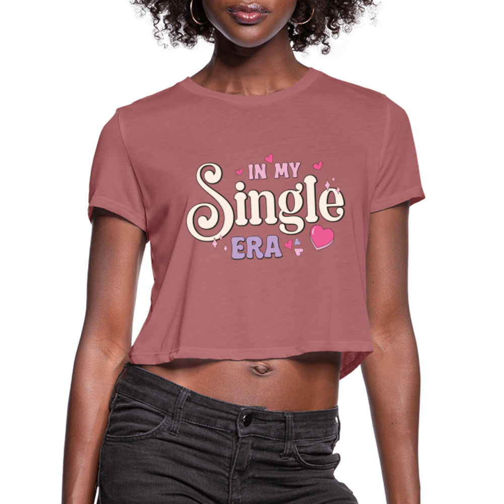 The text "In My Single Era" is boldly displayed on the cropped shirt, capturing the essence of this unique phase in your life. The trendy cropped design adds a chic touch, making it perfect for casual outings or expressing your confidence.
