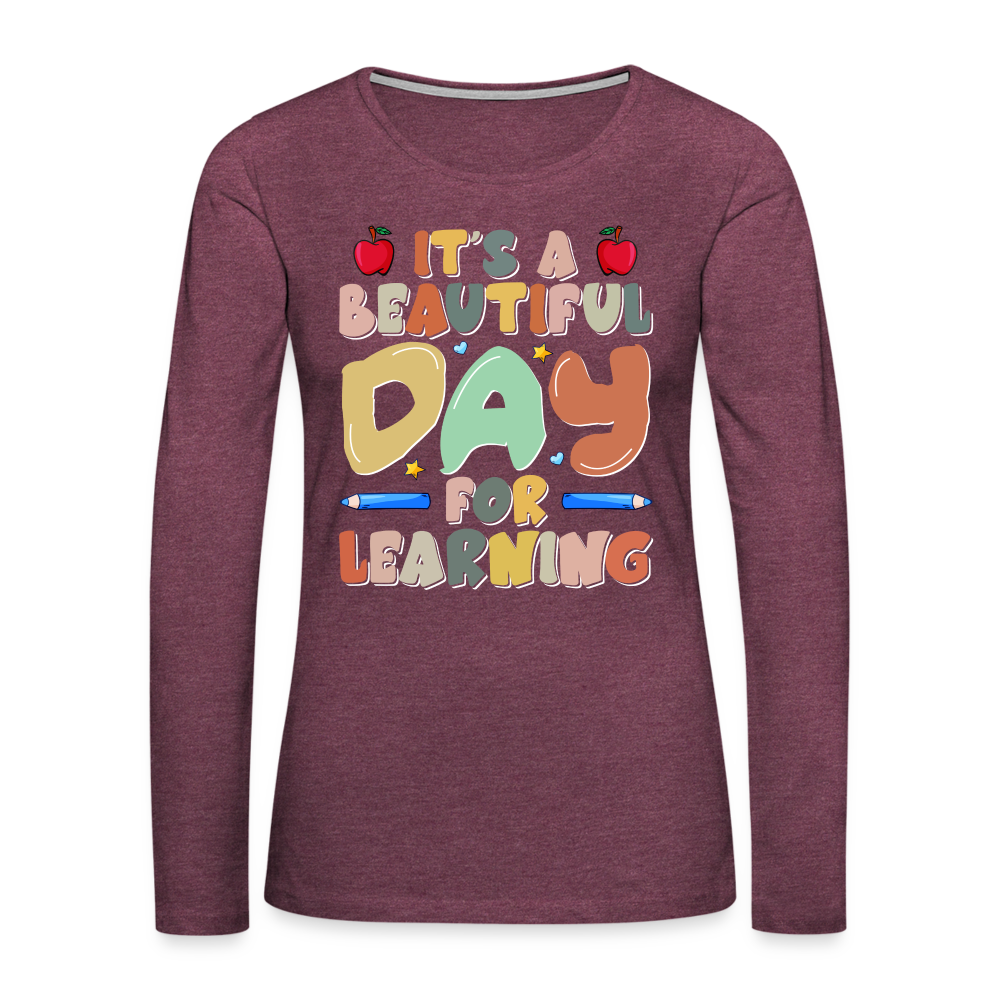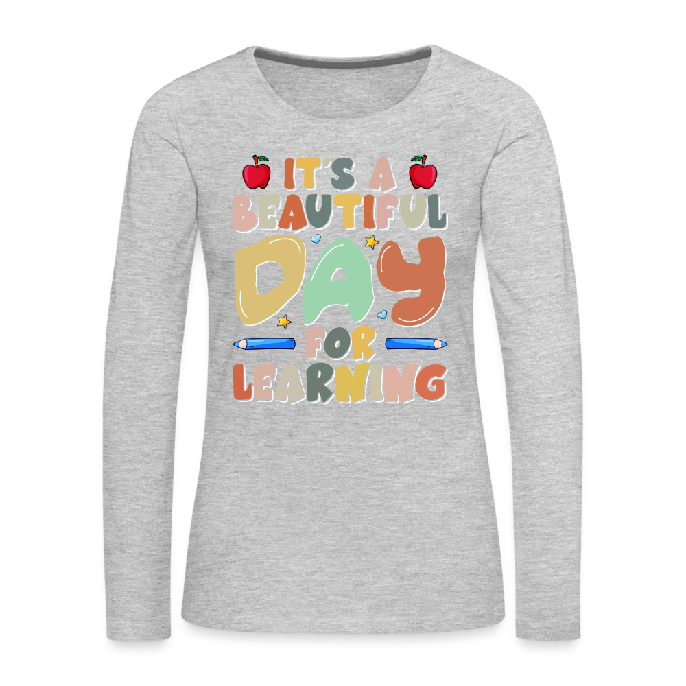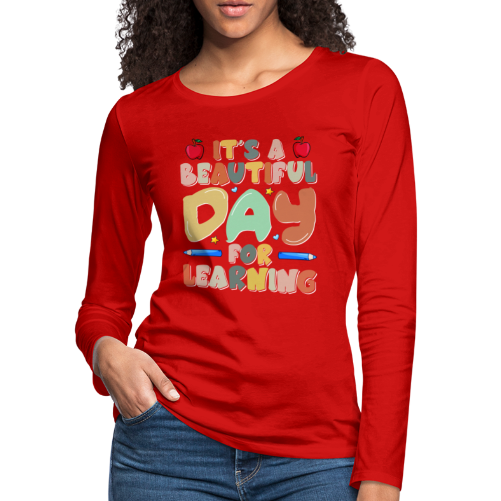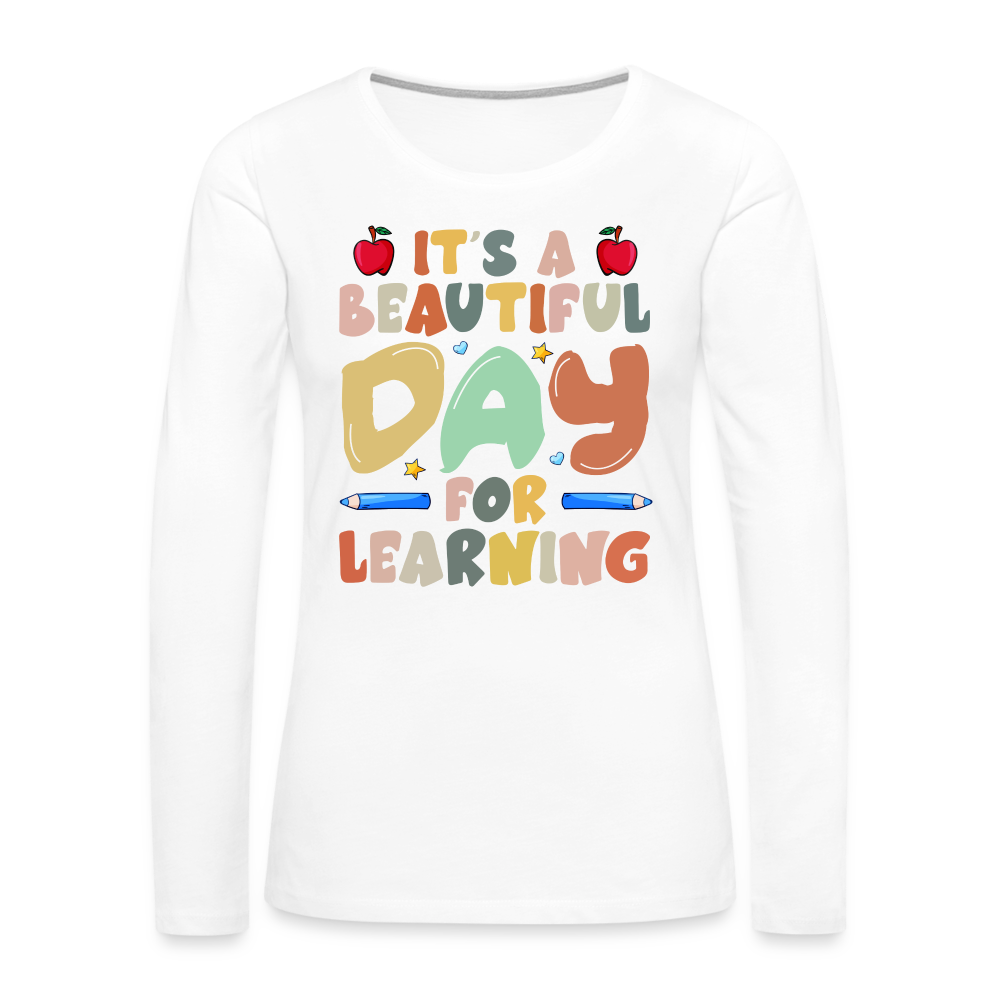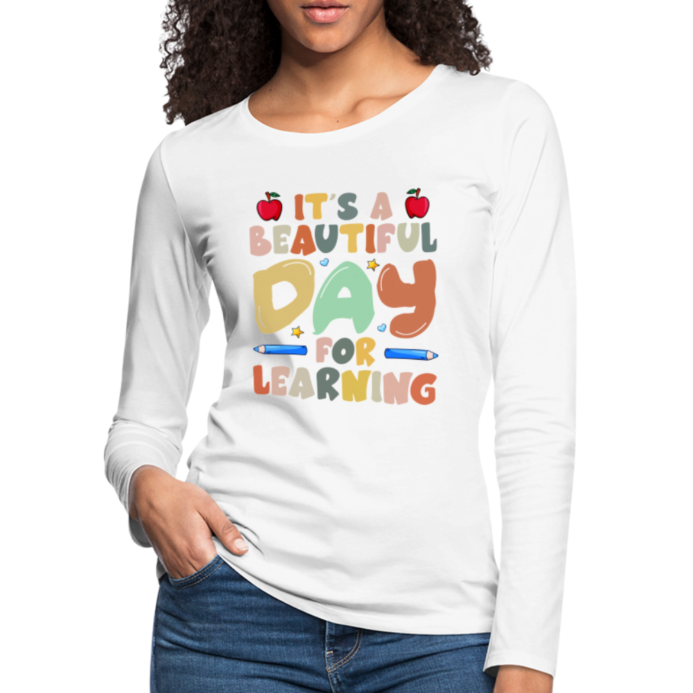 In conclusion, the "It's A Beautiful Day For Learning" Women's Premium Long Sleeve T-shirt is more than just clothing; it's an expression of your passion for education. It combines comfort, style, and a positive message to enhance your teaching experience and inspire your students. Choose this shirt to make a statement about the importance of learning and the dedication of educators like you.