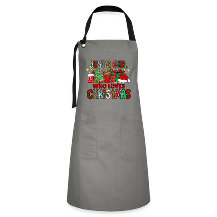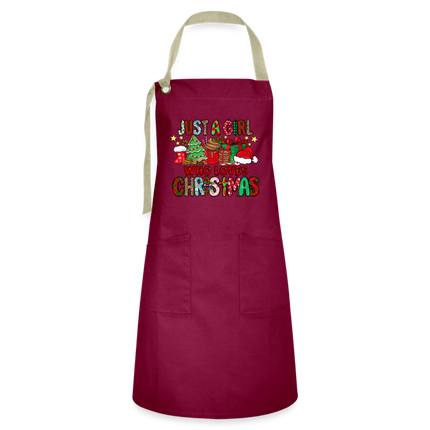 Treat yourself or surprise a loved one with the Just A Girl Who Loves Christmas Artisan Apron. Order now and bring the joy of Christmas to your kitchen! ππ©βπ³