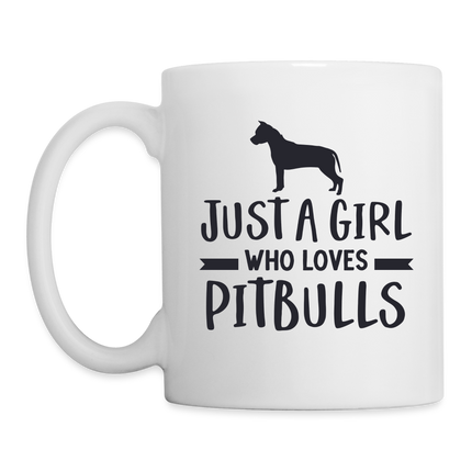 This mug is a perfect way to express your love for pitbulls while enjoying your morning coffee or tea. The stylish design features the text "Just a Girl Who Loves Pitbulls," making it a great addition to your collection of pitbull-themed items.